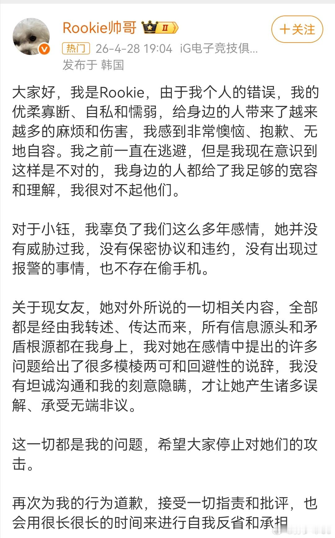 内容极为炸裂的道歉,感情比比赛更有关注度Rookie道歉