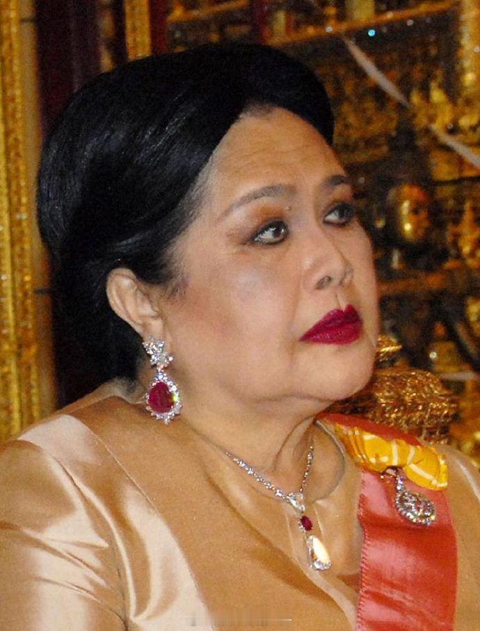 曾属于泰国王后诗丽吉的钻石吊坠,结构就是三角形钻+圆形红宝石+水滴钻,来自卡地亚 诗丽吉是梵克雅宝的顶级vip,来自梵克雅宝的珠宝多得数不过来,卡地亚的珠宝倒见得不多,这坠子大概率也是自行购入,从佩戴照看应该在王后生涯的偏后期了,脸因为医美过度比较吓人,不能细看 可能因为诗丽吉其他珠宝太厉害,每一件体量都颇大,这坠子明明钻不小却被她戴得挺秀气。她去世后暂时不知道这坠子有没归谁,也没见其他人戴过,其实也挺适合后辈佩戴的