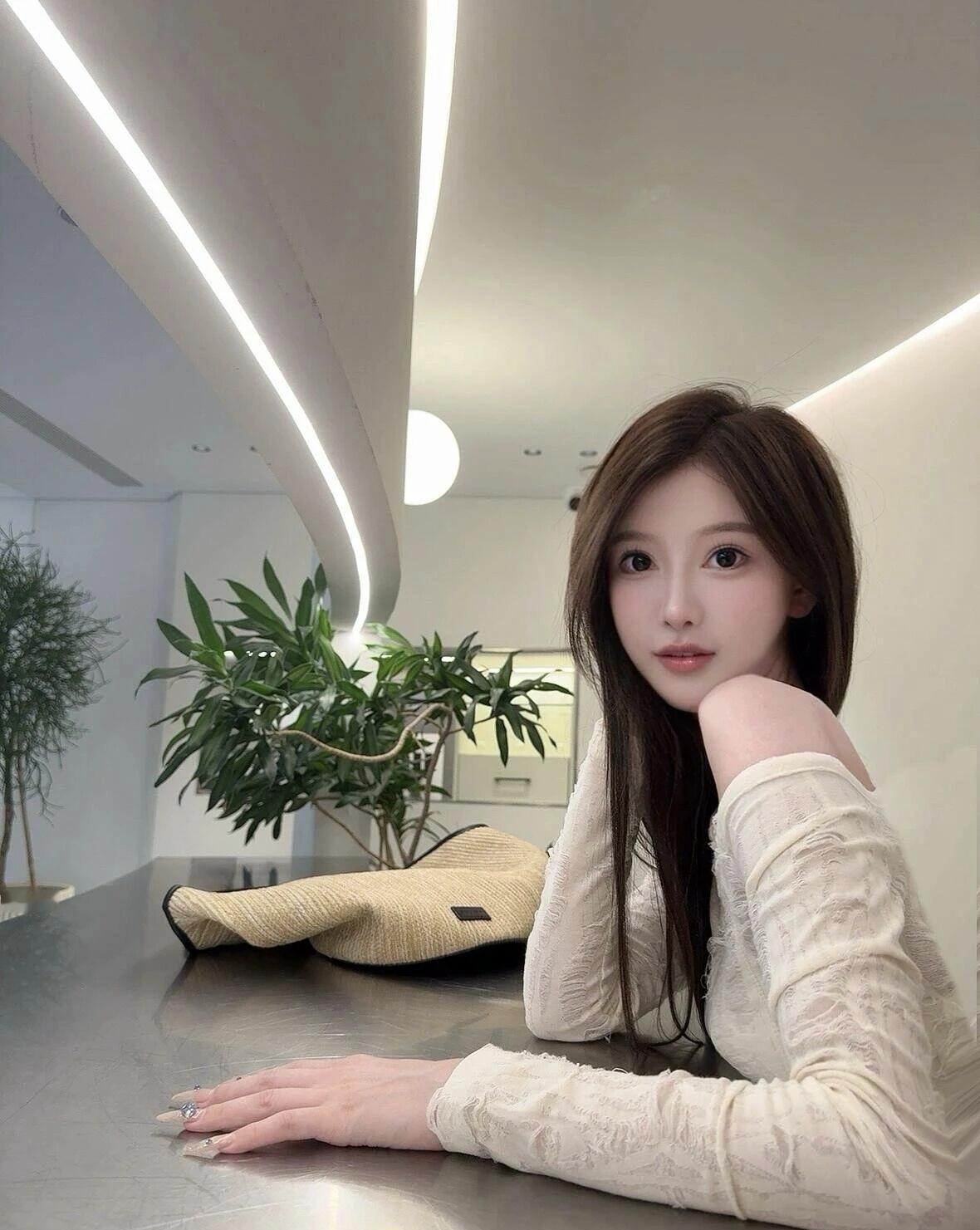 温柔的光线下,她轻轻抚摸着自己的颈链,散发着优雅的气息。
