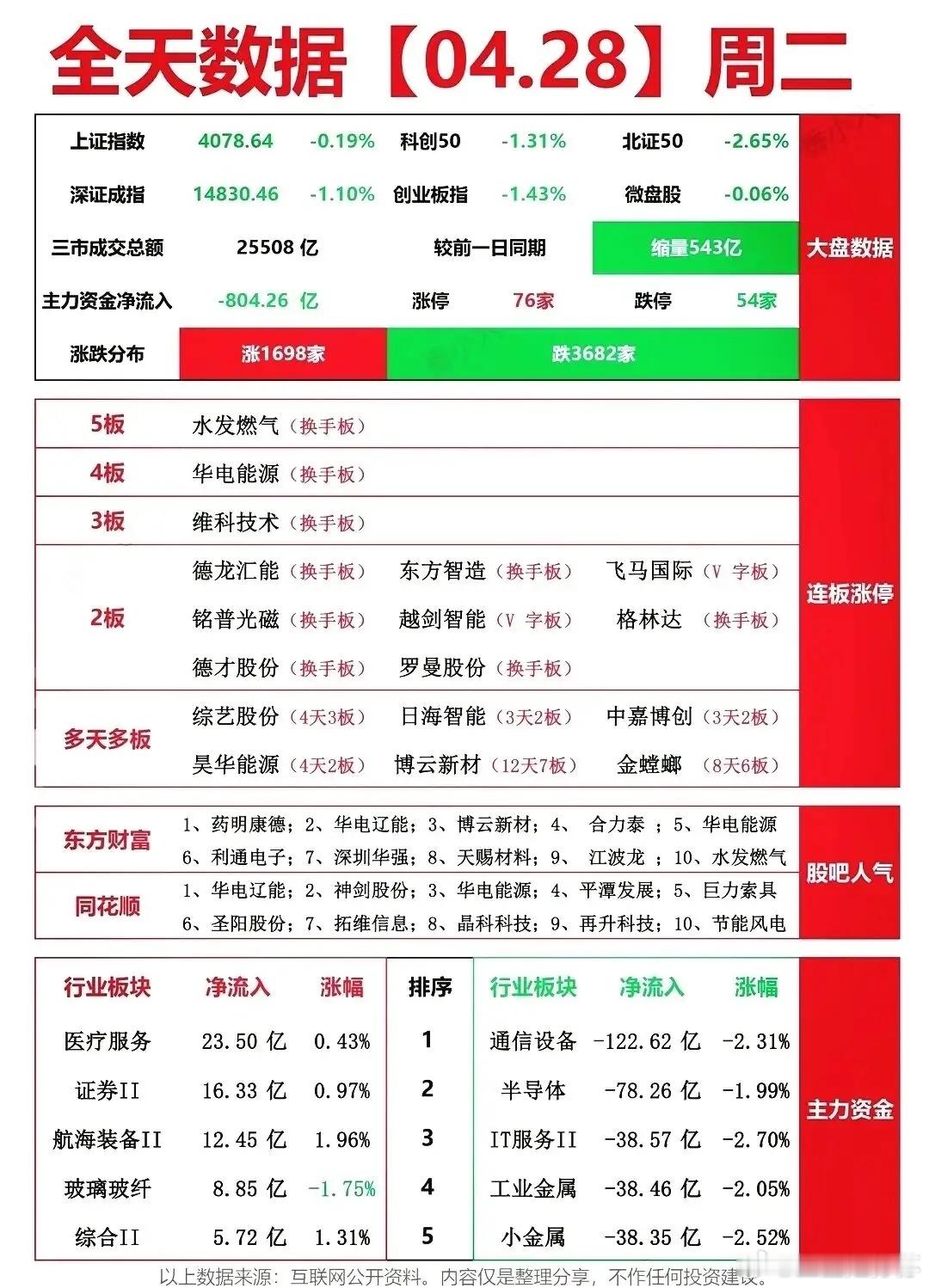4月28日资金与情绪复盘:缩量下的高位博弈与主线坚守!