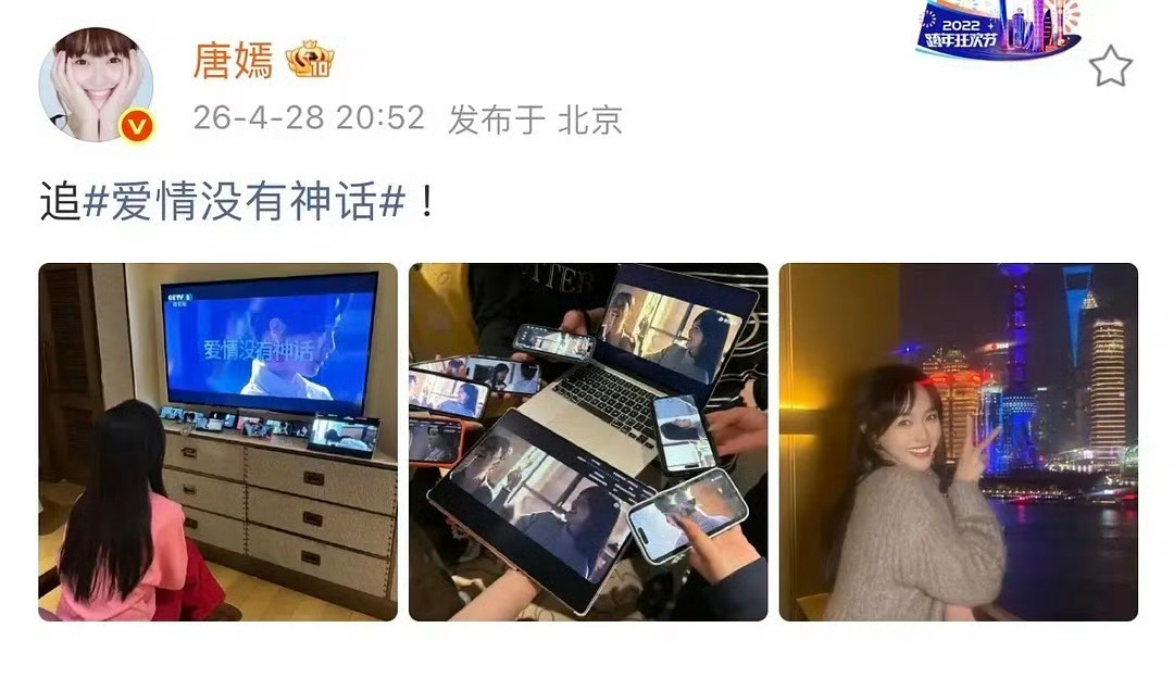 唐嫣大虐,新剧开播都轮到自己出来晒设备催挂播了。爱情没有神话因为前面编剧秦雯风波影响今天临时空降播出,本来就差不多半退圈号召力砍半,剧又走的是上浮路线,剧情无聊,远没有隔壁蜜语纪一样的发酵空间,感觉扑定了爱情没有神话开播