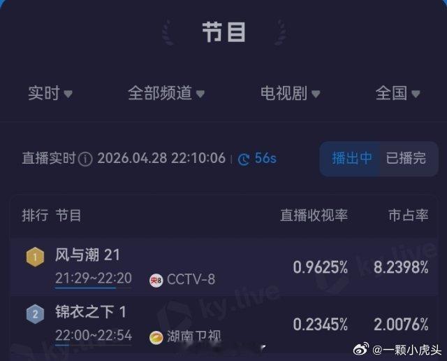 任嘉伦收视大户,《风与潮》《锦衣之下》重播收视率拿下第一第二👏