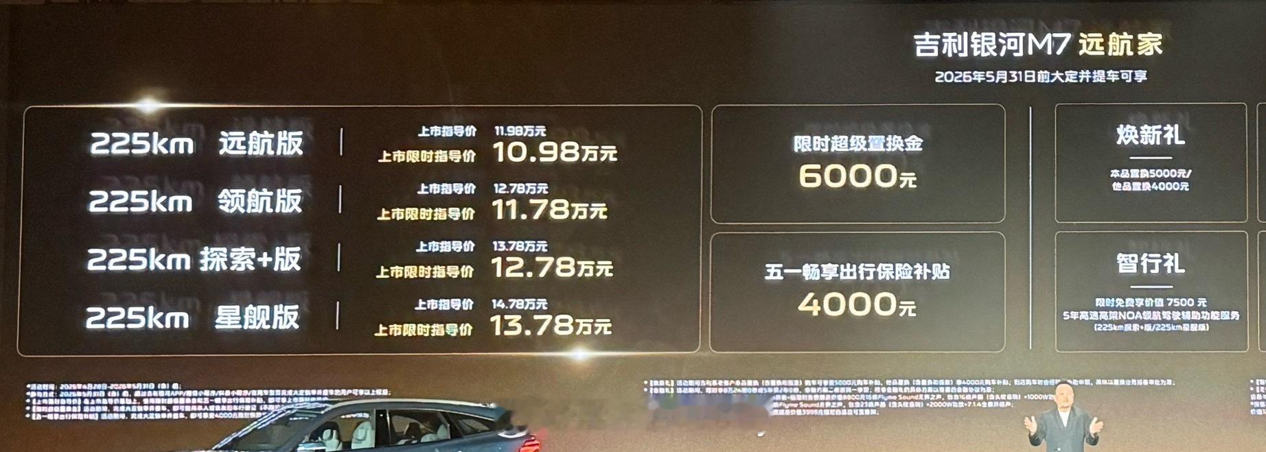 吉利银河M7上市价格区间这个价位给到了主流电混SUV相当高的配置