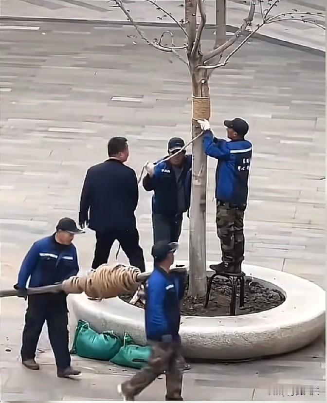 这个视频我看了一个小时,思考了十个小时,感觉真是羡慕人家,一个活,可以解决五个人的就业,还顺带培养出一个领导。 还能把活干的漂亮无风险,真是人才。[赞][赞]全国要大力倡导这样的活,给每棵树都缠上绳子,就业不就解决了? 发达国家都是这样干的,大国工匠精神。 给政府干活就是好,有板有眼。一丝不苟,可不能一个人就把绳子给缠完了。 不像我自己干,晚上干客服,白天做客房,顺带还干采购、会计的活,还得照顾俩娃。 关键是还赚不到钱。[捂脸]