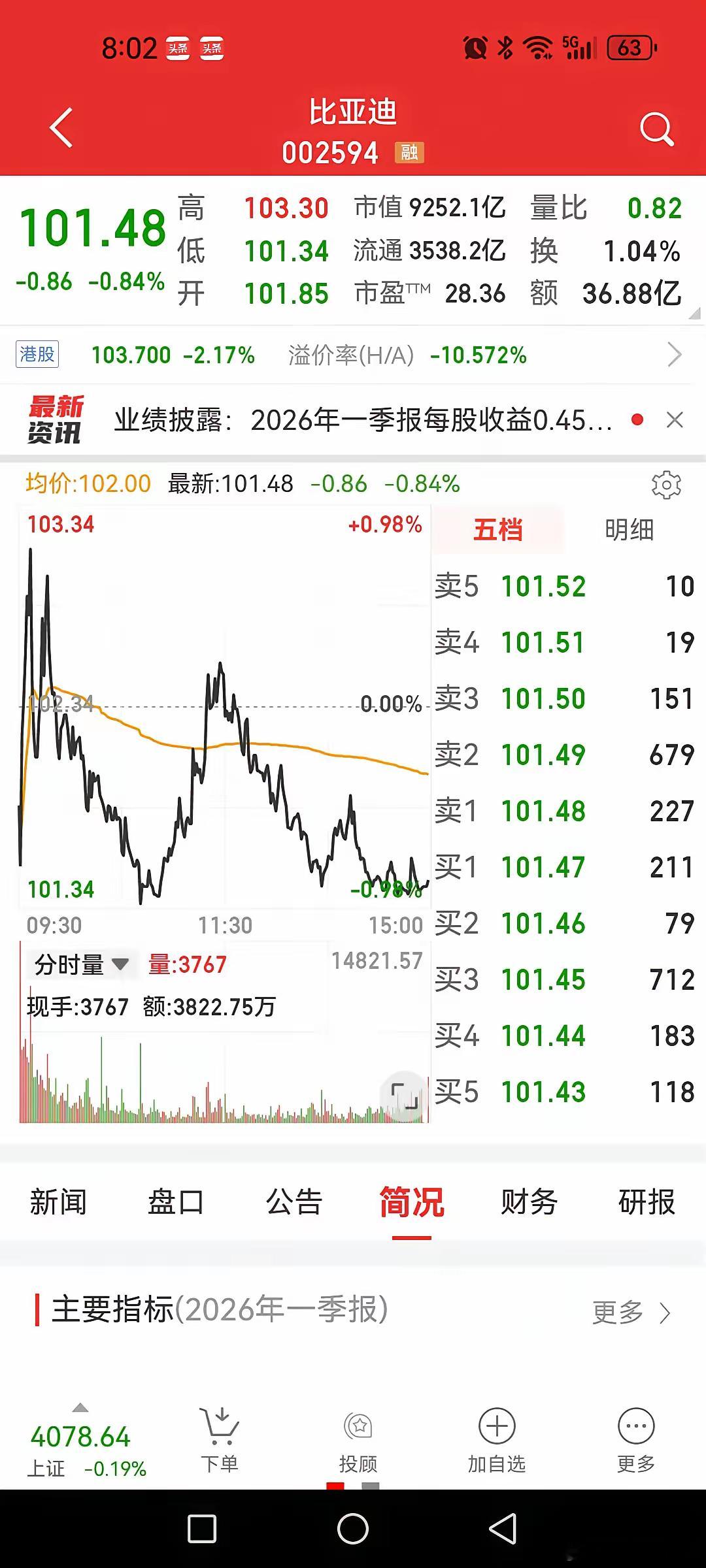 比亚迪一季报利润大幅下降,今日股价还稳起的,明天呢?