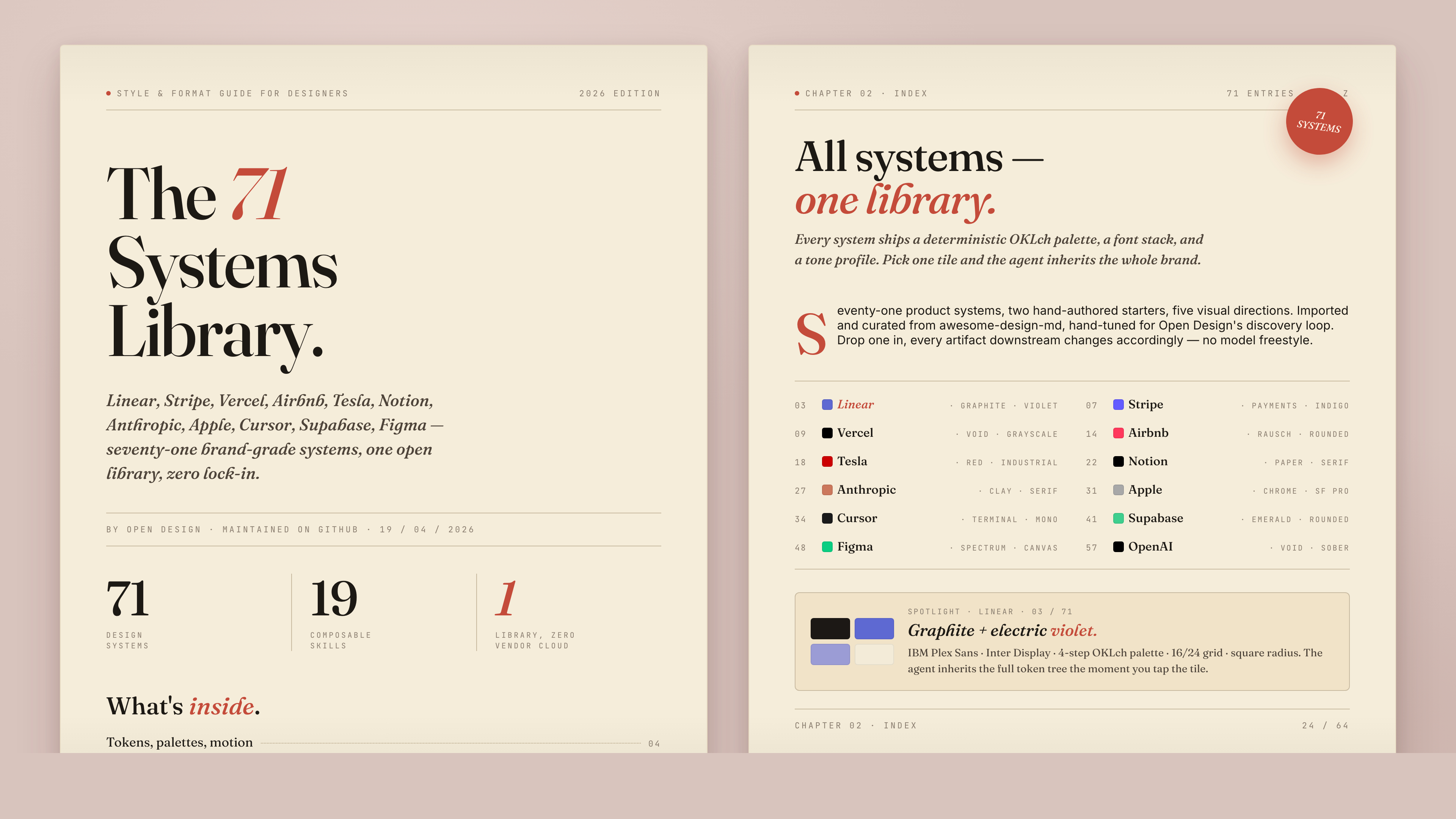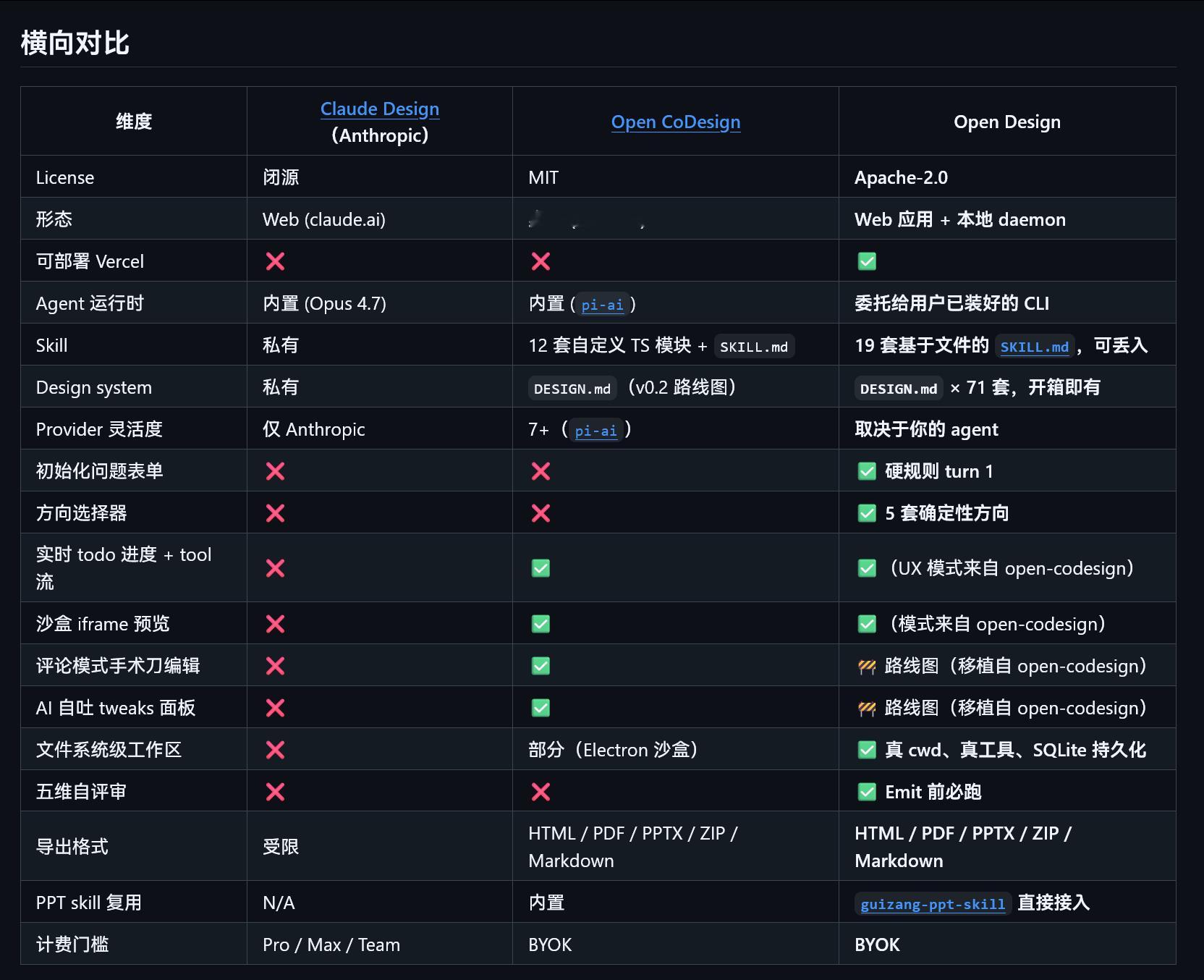 Open Design :Claude Design 的开源替代品。地址:github.com/nexu-io/open-design/“Anthropic 的 Claude Design(2026-04-17 发布,基于 Opus 4.7)让大家第一次看到:当一个 LLM 不再写废话、开始直接交付设计成品,会是什么样子。它瞬间出圈 —— 然后保持闭源、付费、只跑在云上、绑定 Anthropic 的模型和 Anthropic 的内部 skill。没有 checkout,没有自托管,没有 Vercel 部署,也换不了自己的 agent。