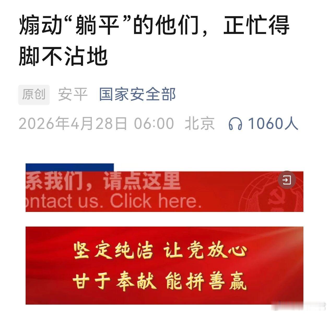 近日,国家安全部官方微信一篇《“煽动” 躺平的他们,正忙得脚不沾地》的文章,撕开了境外反华势力意识形态渗透的伪装,字字千钧、直击要害,精准戳破 “躺平”“摆烂” 论调背后的险恶图谋。