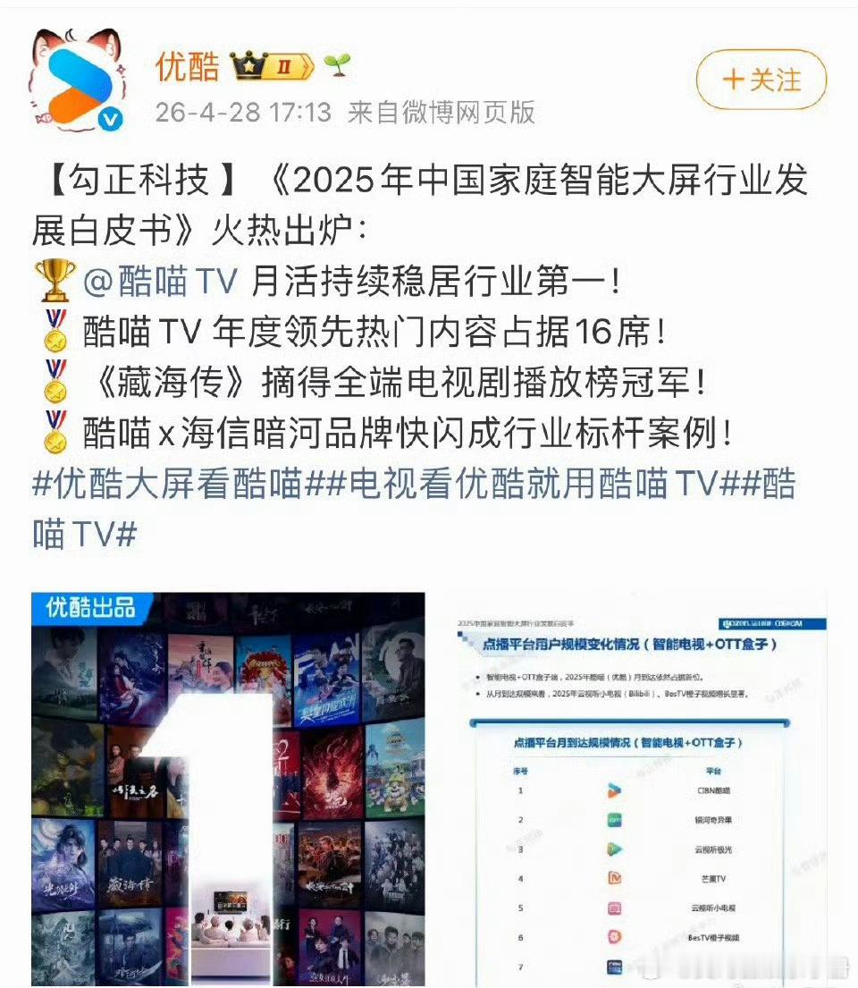 优酷又战报提到肖战《藏海传》摘得家庭终端全端电视剧播放榜冠军!含金量如何?