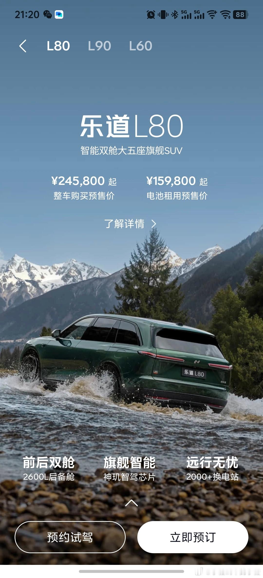 乐道L80预售价:租电15.98万起,整车购买24.58万起,这价格行啊,别忘了