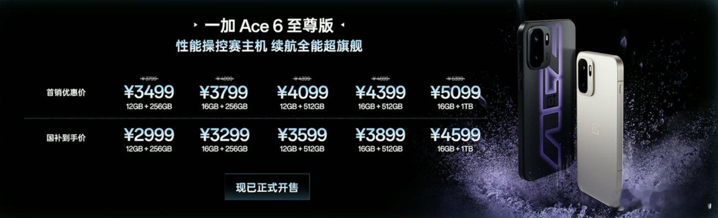 3499 元起一加 Ace 6 至尊版手机正式发布,“枪神游戏手柄”专属外设、天
