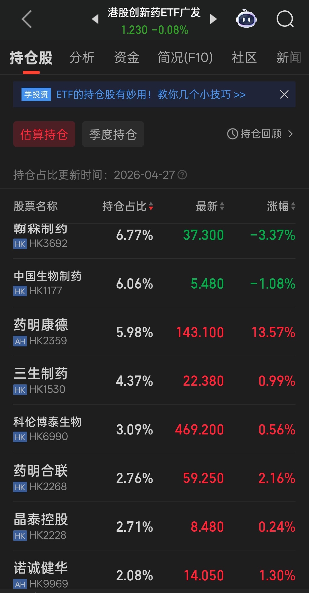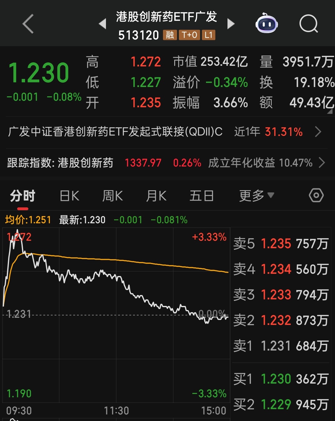 今天的港股创新药ETF从开盘的+3%,再到收盘的微跌0.08%