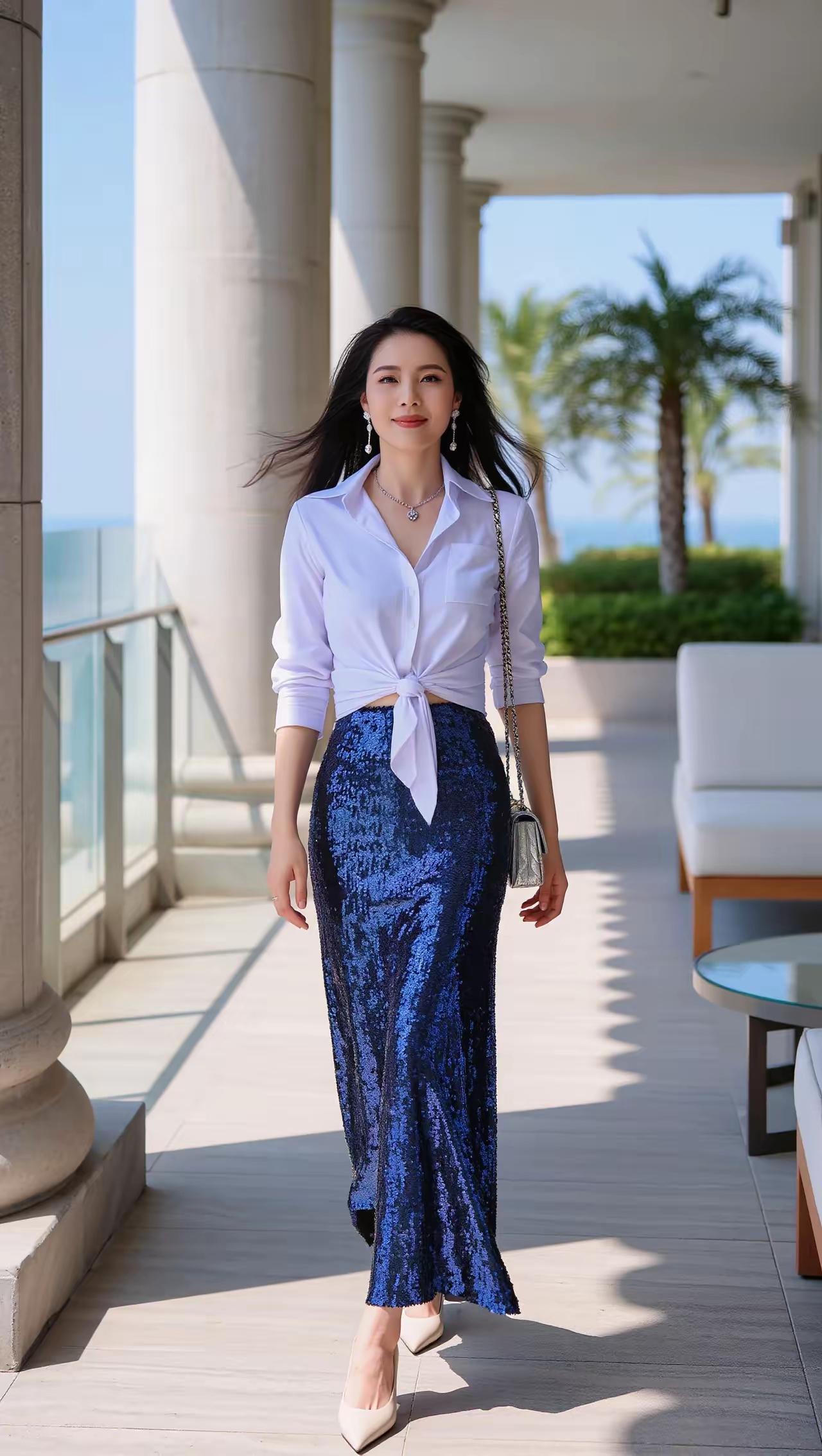 清新简约风穿搭,白色衬衫+短裙,优雅又减龄!💕