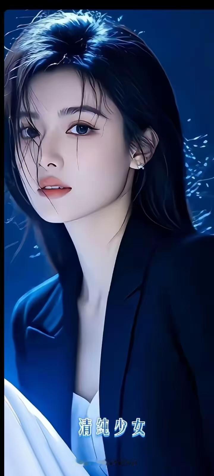她闪钻眼妆灵动吸睛,水光红唇饱满诱人,凌乱的发丝更添几分慵懒。黑色背景中,她的棕色长发显得柔和飘逸。蓝调夜色包裹着静谧,光影细腻地勾勒出东方柔美的轮廓。