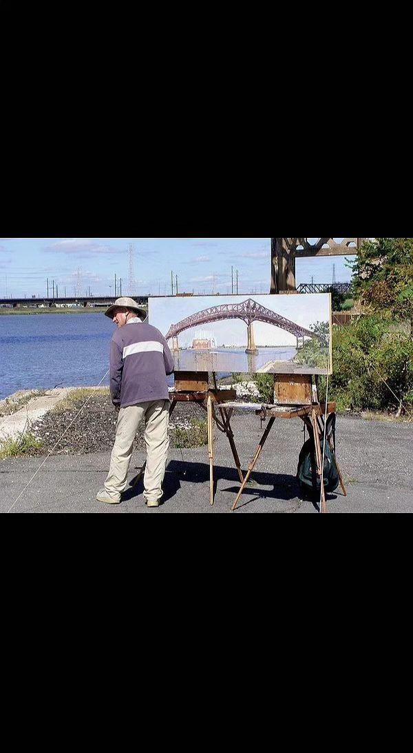 🎨把桥搬进画布,风是最好的调色师🌬️。老人与河,都是时光的画中人✨。