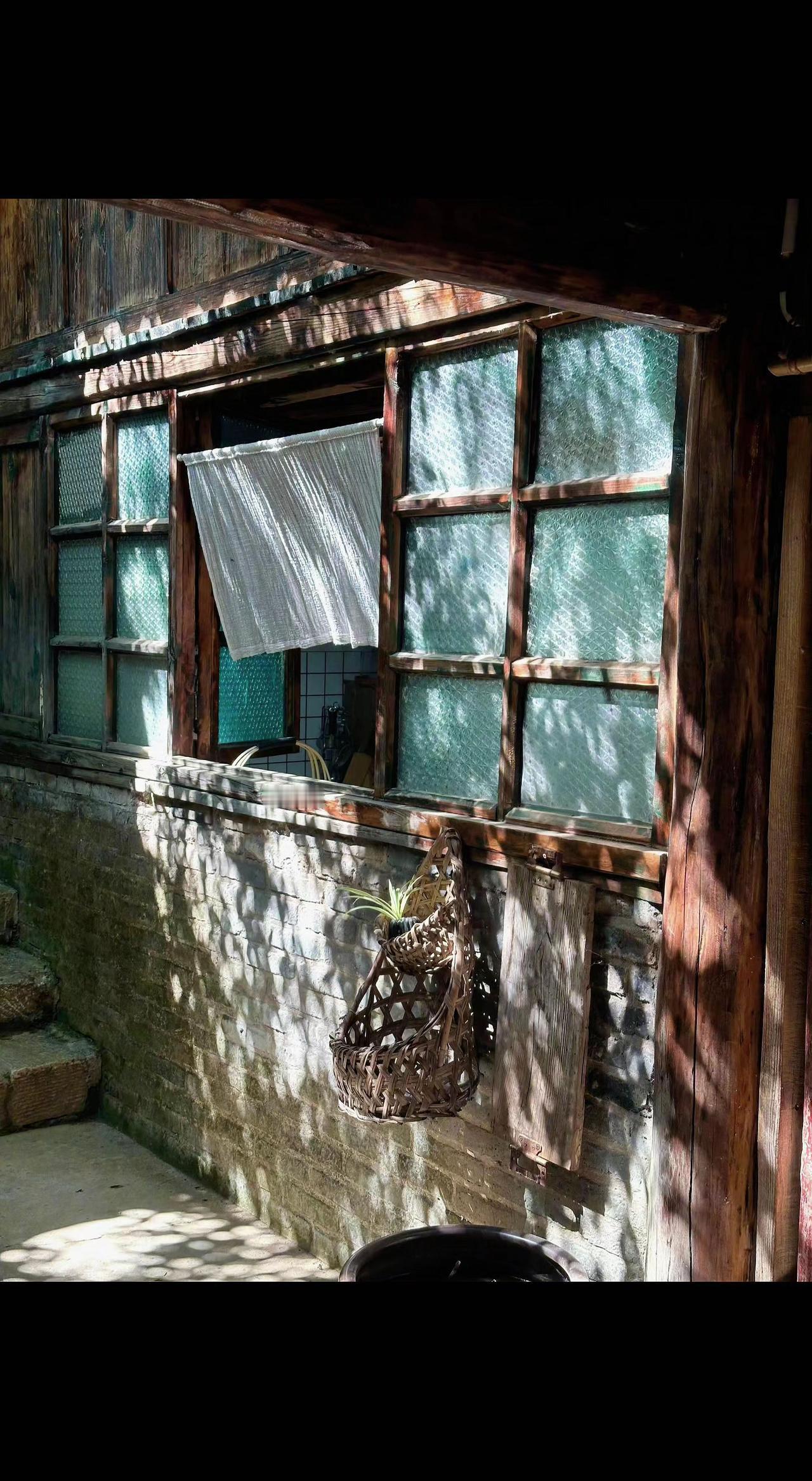 ☀️老窗棂爬满光影✨竹篮晃着旧时光~这灰砖房藏着多少故事?