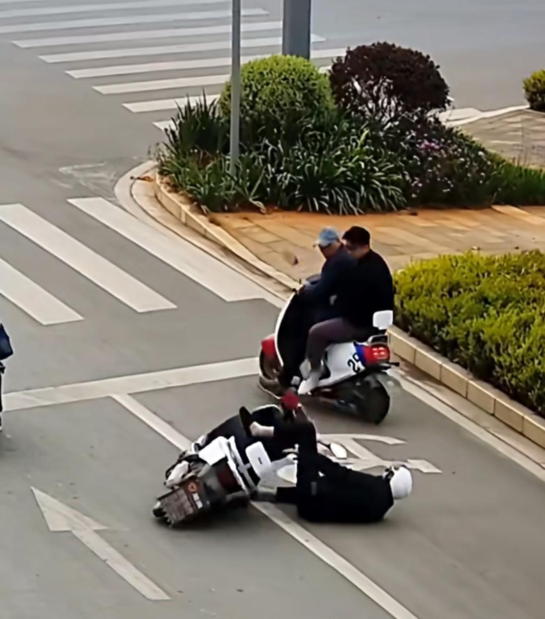 路口车流不息,谁也没想到,危险会来得这么猝不及防。一名男子骑着电动车,在等红灯时突然发病,连人带车重重摔倒在地。 热心群众立即施以援手,男子道谢后,还没走两步又再次摔倒,正在附近巡逻的民警立刻发现了异常,他们没有丝毫犹豫,第一时间冲上前查看情况,一边轻声安抚男子,一边迅速拨打120急救电话。 民警们围在男子身边,疏导着过往车辆,为他筑起了一道安全的屏障,防止二次伤害的发生。 民警们寸步不离,一直守在他身边,不断观察他的状态,直到救护车呼啸着赶到现场,医护人员迅速将他抬上担架送往医院救治。 很多人说,这短短几分钟的守护,不仅救了他的命,更守住了一个家庭的希望。 我们总说,岁月静好,可正是这些默默守护的人,在每一个危险瞬间挺身而出,为我们挡住了风雨。 这世上哪有什么从天而降的英雄,只有挺身而出的普通人。他们的每一次伸手,都在告诉我们,你从来都不是一个人在面对困境。守护从不缺席 守护就在身边