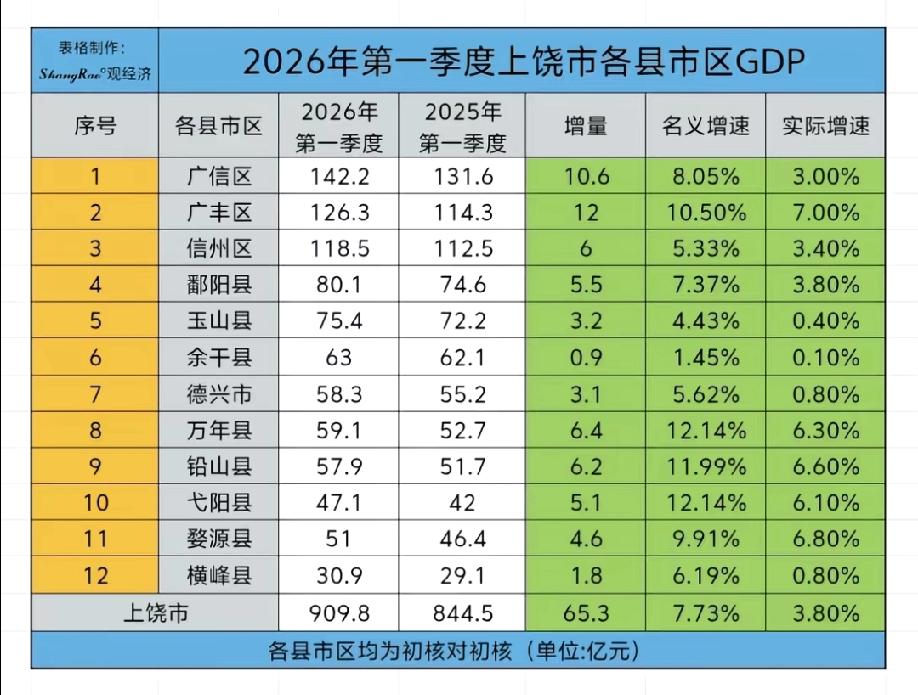 玉山、余干、德兴、横峰遇到发展瓶颈了?几乎没增长,除了价格因素,实际增长1%不到。 还好是广丰、万年、弋阳、铅山、婺源,猛得往上窜了窜,不然增量太少了。 横向对比的宜春,增量回升迅猛,上饶又被宜春超回去了。