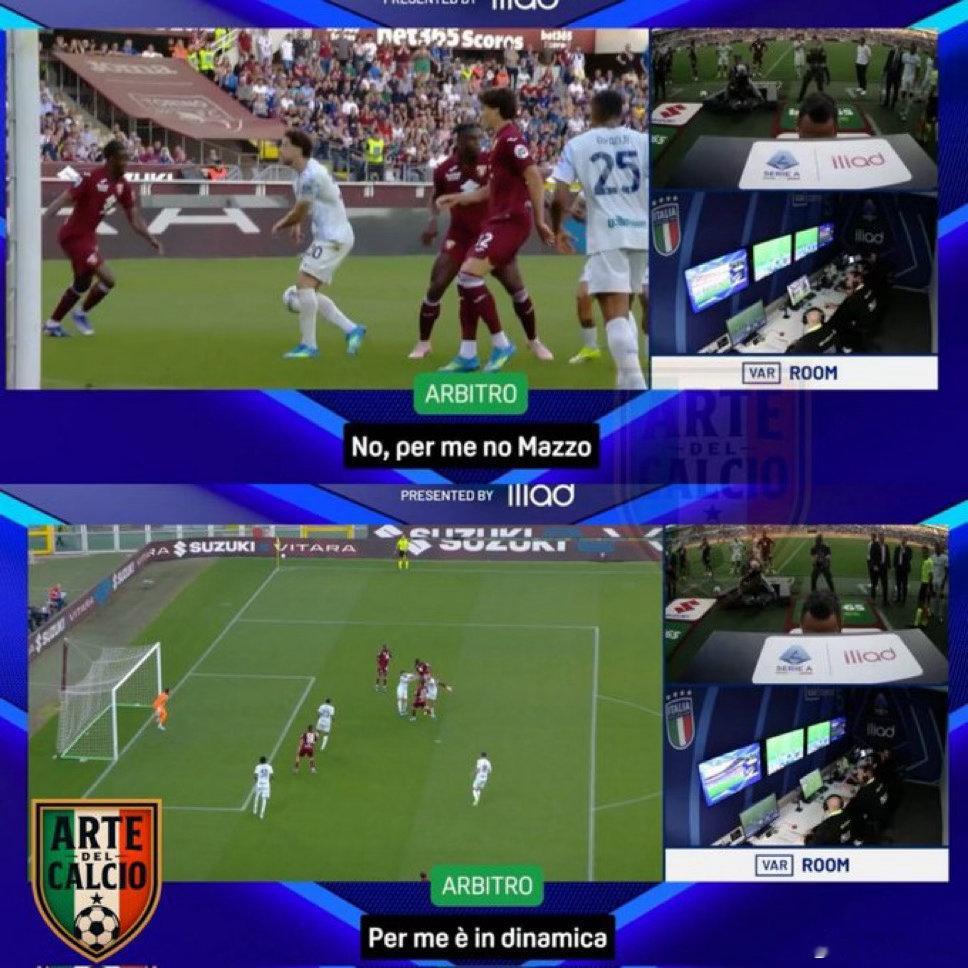 关于都灵-国际米兰的比赛中卡洛斯·奥古斯托被判点球 VAR和主裁判的对话如下