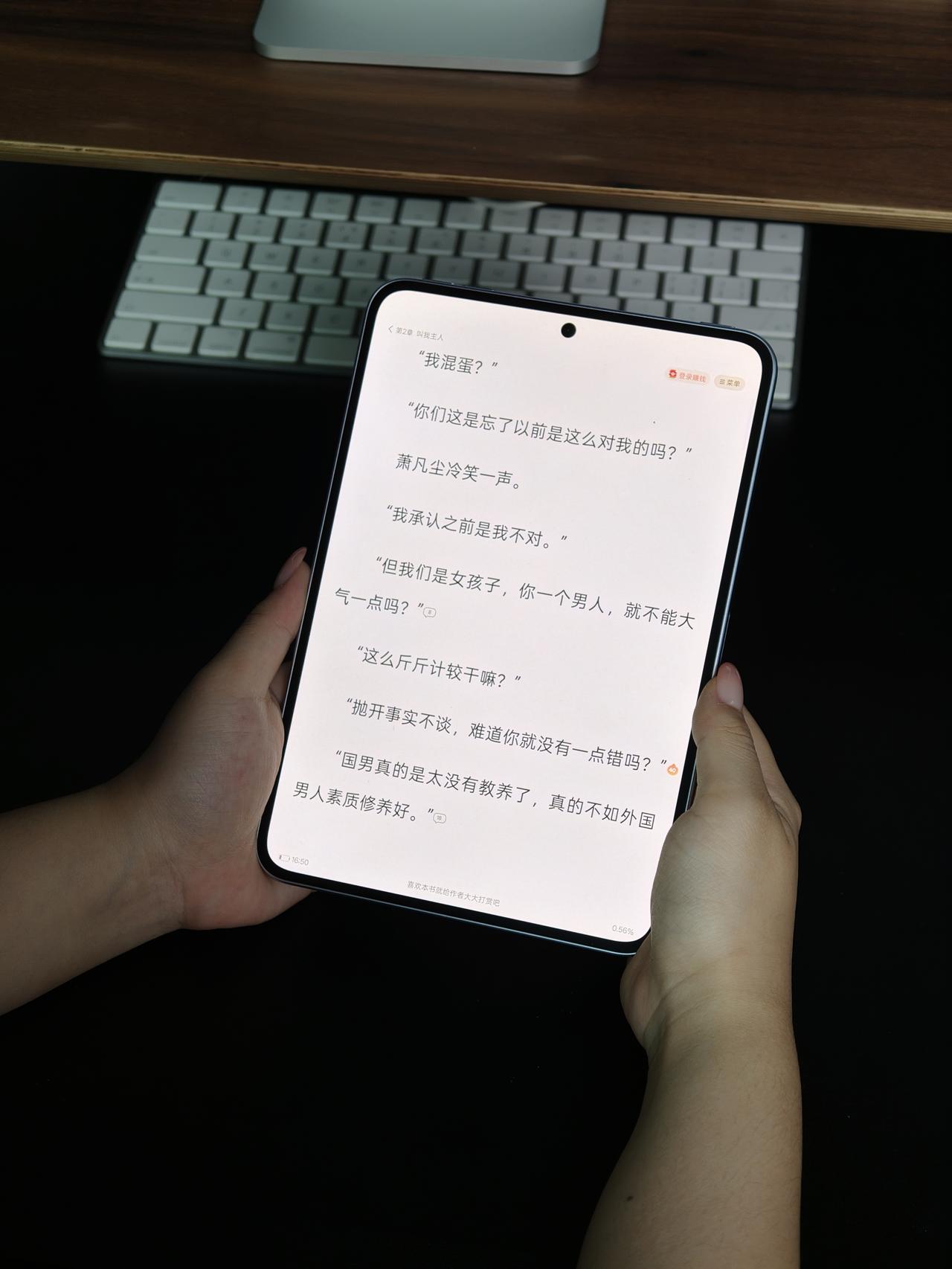 这小平板是来拯救小说、漫画党的吧? 作为常年看小说、追漫画的人,等提前拿到OPPO Pad mini才后知后觉,以前用手机看是遭的什么罪,手机看漫画还是没那么爽! 因为主要是看书、看漫画,所以入的是柔光版!一些复杂的光线基本上没有什么反光的情况出现,在户外看清晰度还高些;夜间看也很贴心,亮度感觉能够拉低很多,不晃眼、不刺眼,夜间躺床上阅读也更舒适。 屏幕清晰度也很好,看漫画的细节都很清晰,8.8英寸的尺寸算是甜点尺寸,比手机看得爽,又比大平板轻便,平时揣在包里就能带走,上下班通勤路上都能随时拿出来看,OPPO Pad mini算是今年买的比较值的产品! OPPOPadMini 柔光版 小说党 阅读神器 便携平板 护眼平板 漫画党