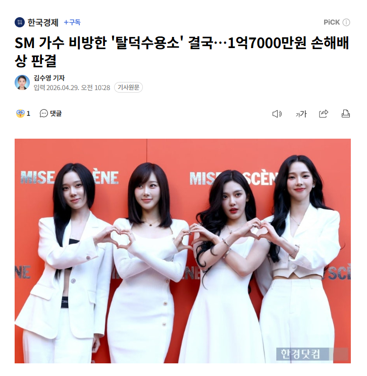 【“脱饭收容所”运营者因恶意诽谤SM娱乐旗下艺人,被判赔偿1.7亿韩元】海外新鲜事热点现场