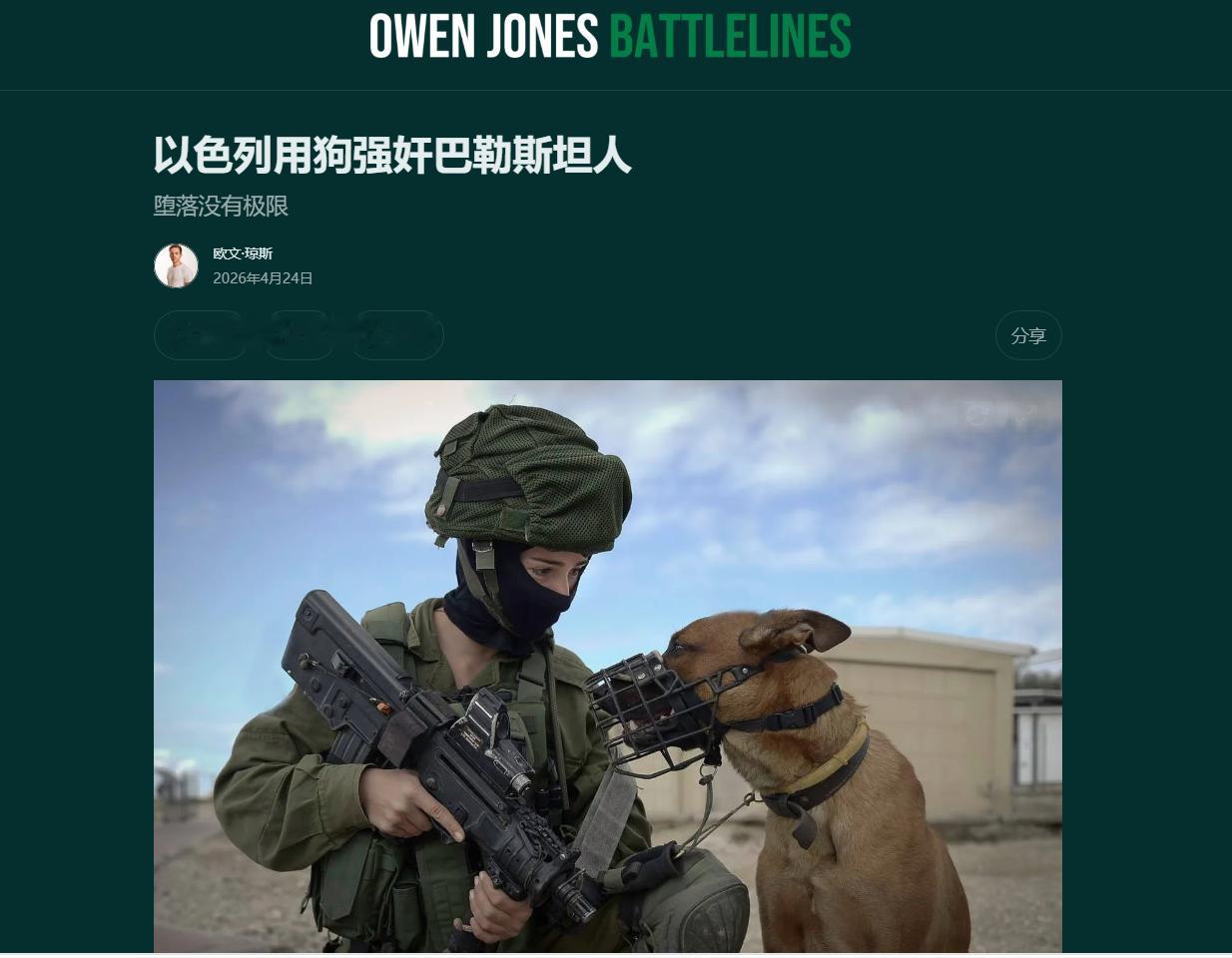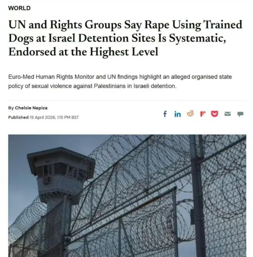 屠龙者终成恶龙!突破人类文明底线的暴行!以色列高层被曝默许训练狗强奸巴勒斯坦人,这是人能干出来的事? 4月26日,欧洲地中海人权监测组织甩出一份重磅报告,标题就带着血——《高墙之后的又一场种族灭绝》。报告里记录的证词,读几行就让人脊背发凉。43岁的瓦吉迪被赤裸绑在金属床上,一名士兵强奸他的时候,其他士兵在旁边举着手机边拍边笑。紧接着,一条经过专门训练的狗被带进来,对他实施了性侵。同一天,这种暴行至少重复了两次。他说他当时只想死。48岁的A.J.在审讯中被打到失去意识,醒来发现自己的睾丸被手术切除了。这些不是战时流弹误伤,不是个别士兵失控,是写在审讯流程里的标准操作。 最让人毛骨悚然的细节,是狗。联合国人权报告员今年3月向人权理事会提交的专项报告里,整合了300多份证词,直接定性:利用军犬实施性侵已经成为以色列拘押体系中的“结构性特征”,且“获得了最高政治层级的批准”。这不是前线士兵的临时起意,这是有人在办公室里把这套流程设计出来、盖章通过、下发执行的。国家安全部长本-格维尔之流,把这叫“监狱革命”——把羞辱、折磨、摧残合法化,把拘留设施变成精心设计的残酷试验场。 一个遭受过纳粹屠刀的民族,如今在自己搭建的监狱体系里,放狗性侵战俘。这是对六百万死难者最恶毒的亵渎。当年集中营里那些令人发指的场景,如今被当年的受害者后代,一模一样地复刻在了巴勒斯坦人身上。施暴者穿的不是党卫军制服,是以色列国防军的军装;囚犯戴的不是黄色六芒星,是加沙的身份证。历史没有重演,但历史的回旋镖正中眉心。 更让人愤怒的是这套体系顶层的“有罪不罚”闭环。去年7月,五名士兵因为把一名巴勒斯坦囚犯打到肋骨骨折、肺部穿孔、体内撕裂而被起诉。结果不到一年,军方悄悄把指控全撤了,理由是“证据复杂”,涉事士兵恢复了预备役,部分人直接重返前线。内塔尼亚胡把相关诉讼污蔑为对以色列的“血腥诽谤”,财政部长吹捧施暴士兵是“顶尖英雄”。士兵在前线施暴,政客在后方鼓掌,司法系统在中间盖章免责——这不是法治漏洞,这是一条完整的暴力产业链。 国际社会的反应被预判了。联合国的人权报告被以色列常驻代表直接打回,定性为“毫无根据”,独立核查人员至今进不了拘押设施。呼吁ICC介入调查的声音年年有,但枪声一响,所有决议都变成了新闻稿上的批注。全球多地民众上街抗议,但在缺乏实质性制裁的情况下,多数所谓的“关切”只是把受害者的伤口重新撕开一遍。 斯德泰曼已经不止是一个监狱的名字,它正在变成21世纪人类文明的一个耻辱坐标。当一条经过训练的狗被当成审讯工具,而它的主人站在最高层为它鼓掌时,加沙的废墟里已经没有一寸土地是干净的。今天的以色列掌握着远比当年纳粹更先进的科技和武器,但科技越发达,当它被用来践踏人性时,带来的灾难也就越深重。当一个民族用自己曾承受过的苦难作为施暴的通行证,它已经把自己钉在了与当年施暴者同一根耻辱柱上!