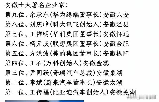 徽商是有历史传承的!看看现在国内那么多知名企业家,来自安徽的竟然有这么多[比心]他们个个都是大牛级的人物! 还真不知道万科的王石和美的的方洪波也是来自安徽的企业家! 这么多安徽籍企业家,除了奇瑞集团的尹同跃一直扎根安徽,目前安徽籍有多少大佬们在投资安徽? 历史上,徽商的地位很高,包括晋商和浙商,他们特别会做生意挣钱,现在也一样,说明做生意能传承[比心]