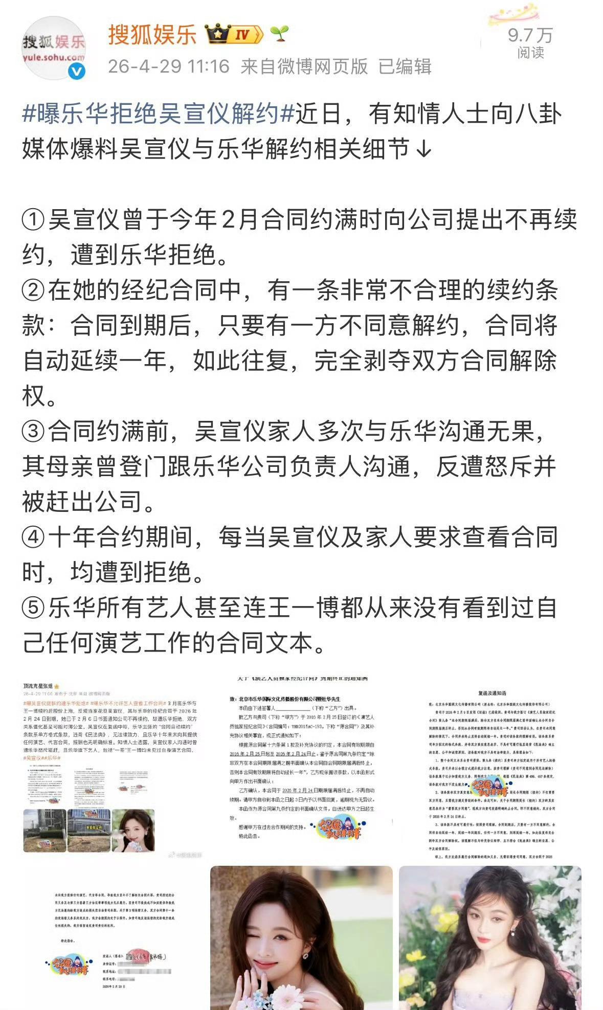 一方不同意解约合同自动顺延一年这种算霸王条款吗?曝吴宣仪提解约遭乐华拒绝