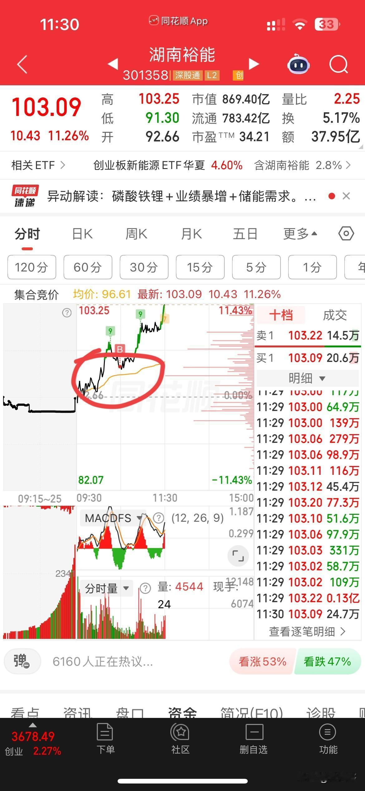 惊天大逆转! 这也太刺激了吧[捂脸][捂脸][捂脸], 如果我今天没买裕能, 估计手机都会摔掉[笑哭][笑哭][笑哭], 昨天裕能出一季报,业绩那么好, 冲高回落,留着巨量假阴线, 格局到尾盘,吓跑了, 早上开盘,手里两只票,都因业绩不及预期,大跌, 本来预计今天不出手的, 看着绿盘心里难受, 思前想后,看着电池挺强,就把裕能追高接回来了, 没想到,给了大肉, 真是太可爱了😍!
