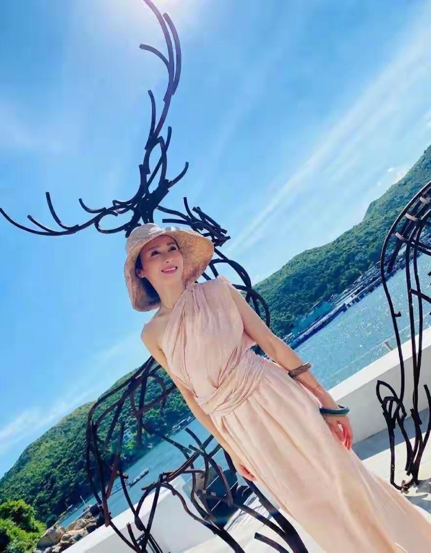 黎姿头上戴的这款太阳帽很时尚,拥有宽宽的帽檐,遮阳效果杠杠的。许多女性买这种宽帽檐的帽子,是因为除了遮挡面部,还需把脖子前后肌肤都遮住。再来说说身上这件裸粉色斜肩裙,其面料摸起来很柔软,散发出强烈的温柔感。 斜肩的设计很有巧思,一边的肩线自然垂落,另一边用布料做了褶皱处理。我们在腰部依旧可看到褶皱处理,与肩膀处的设计刚好呼应上了。蚂蚁腰在不经意间得以展现,裙摆挺宽松,风一吹会轻轻晃,特别有松弛感
