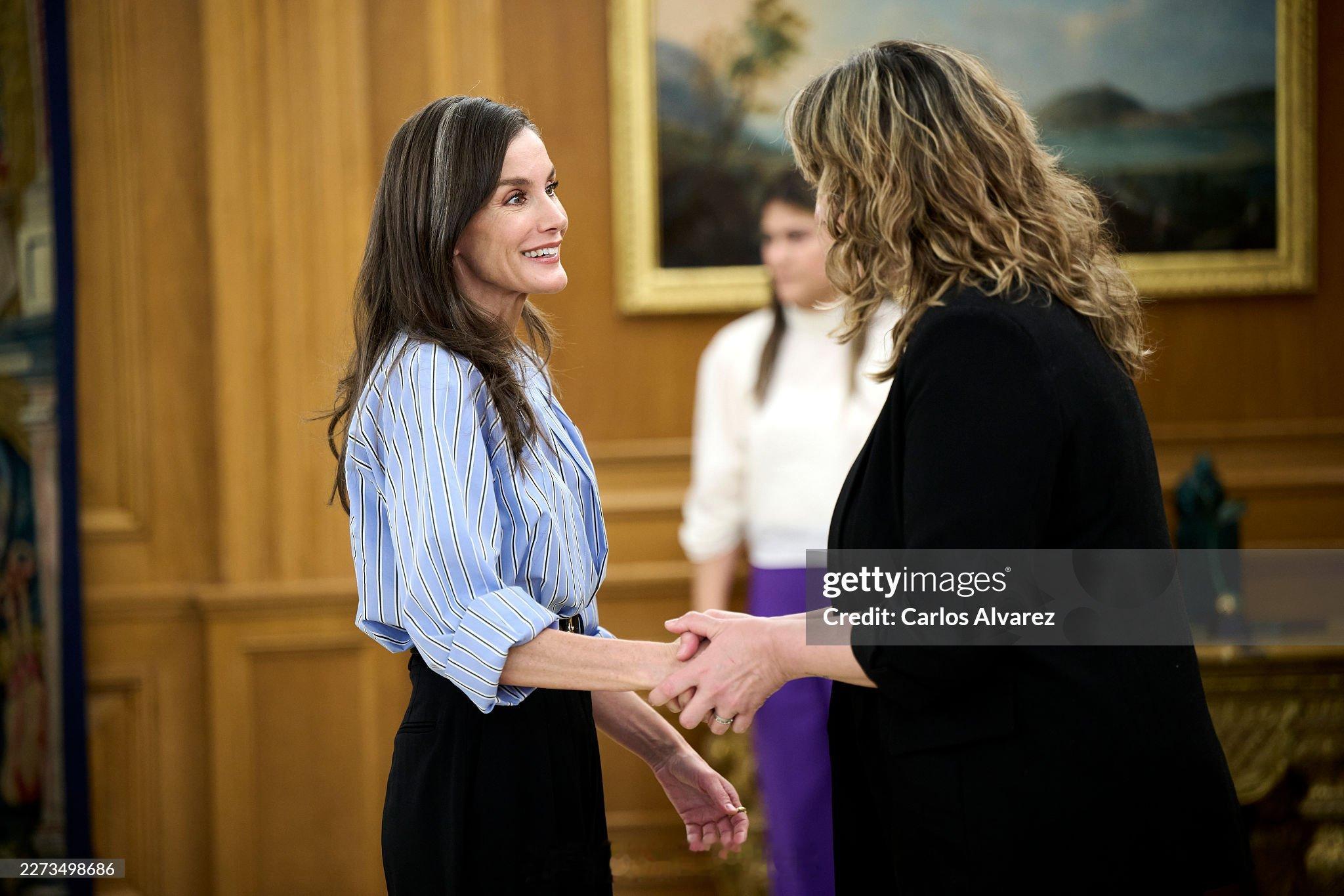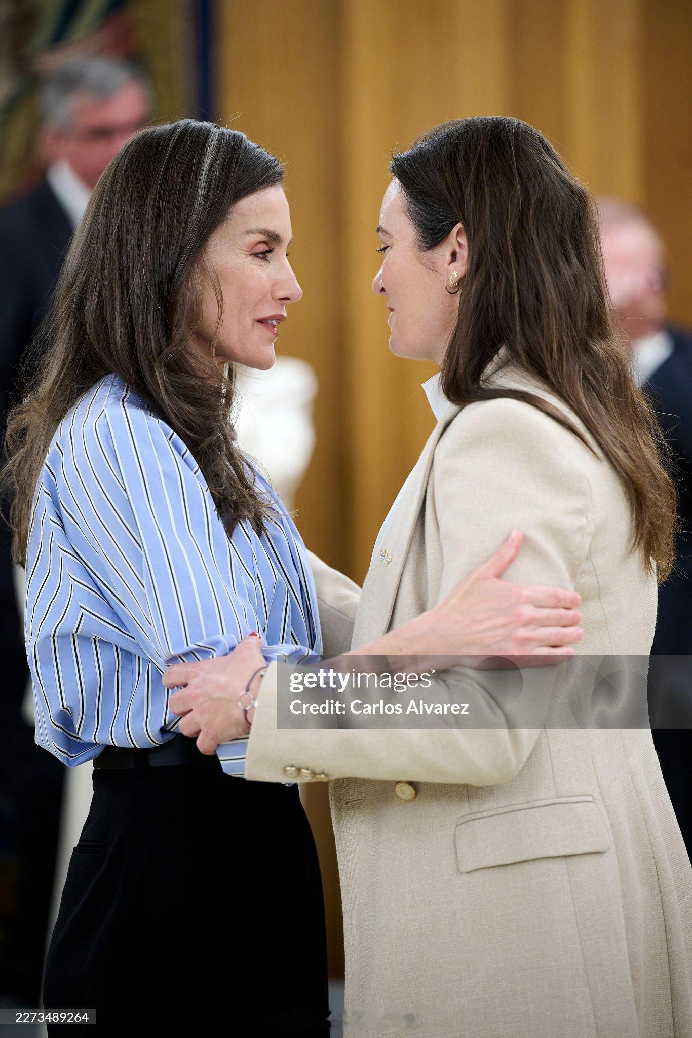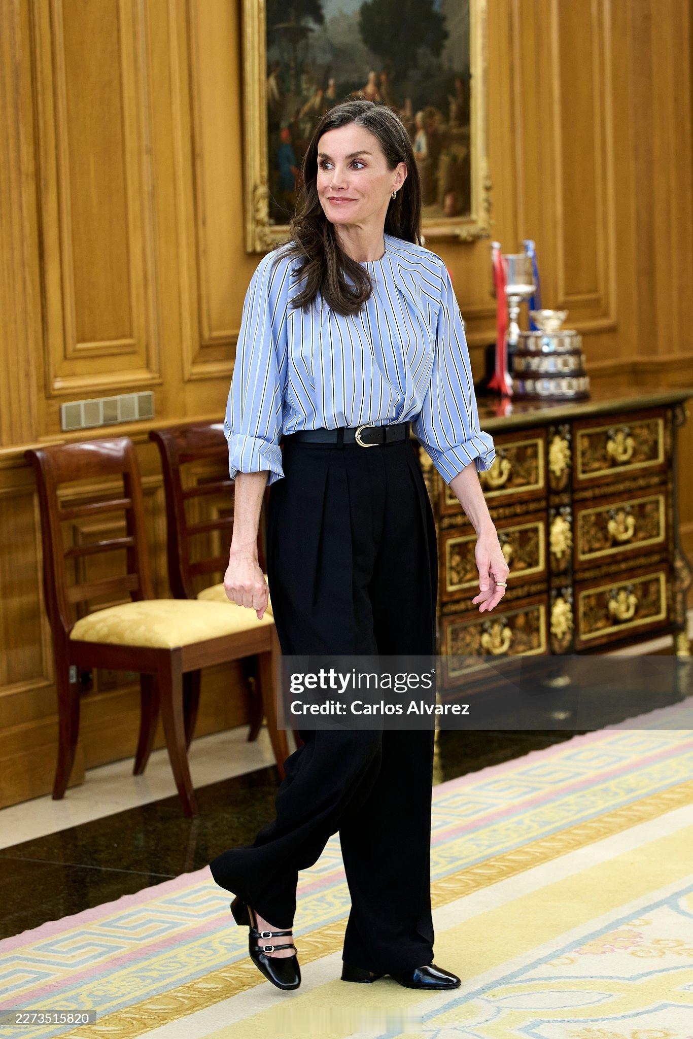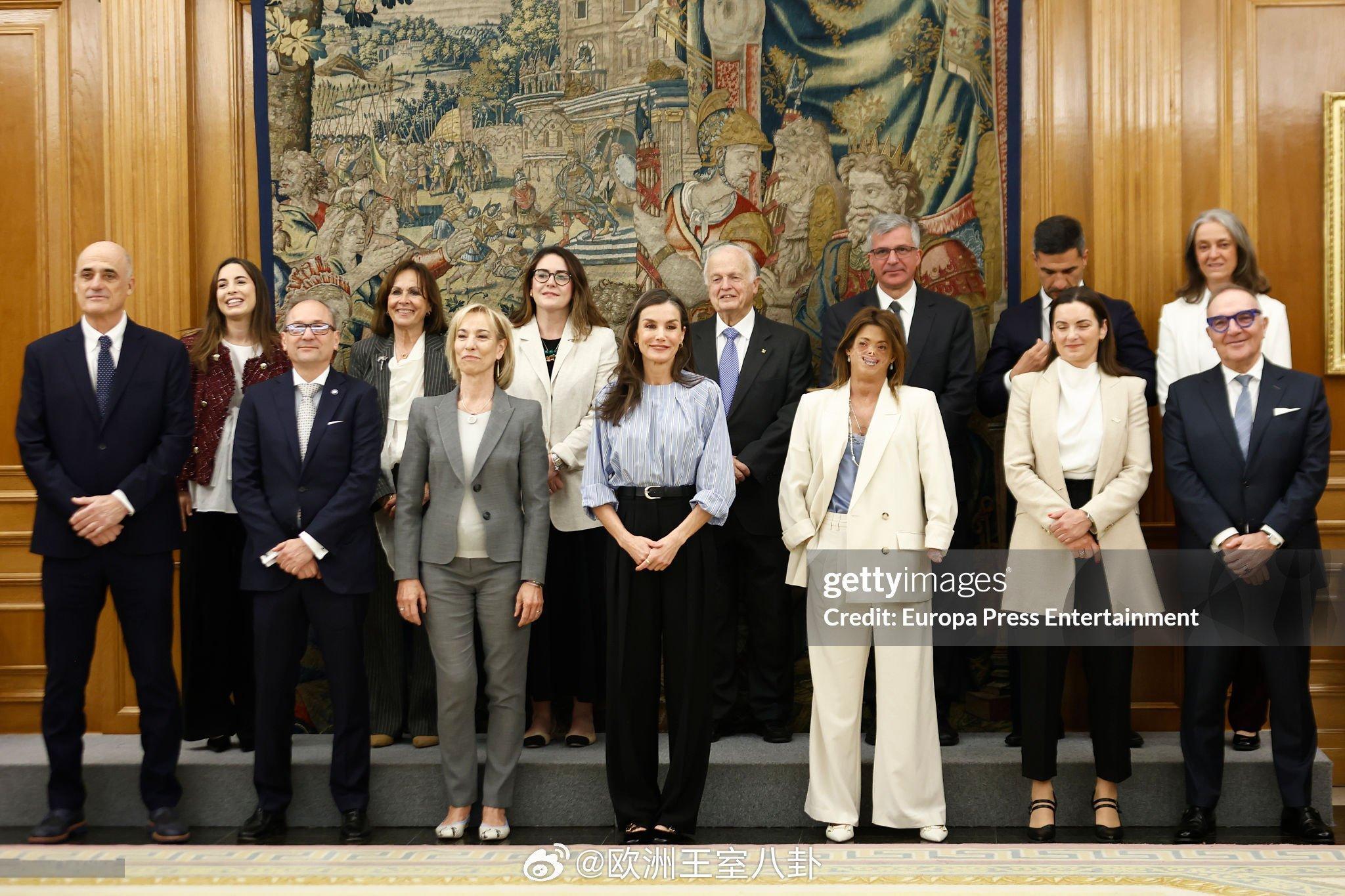 4.28西班牙王后莱蒂齐亚出席多场接待会,衬衣来自AdolfoDomingu