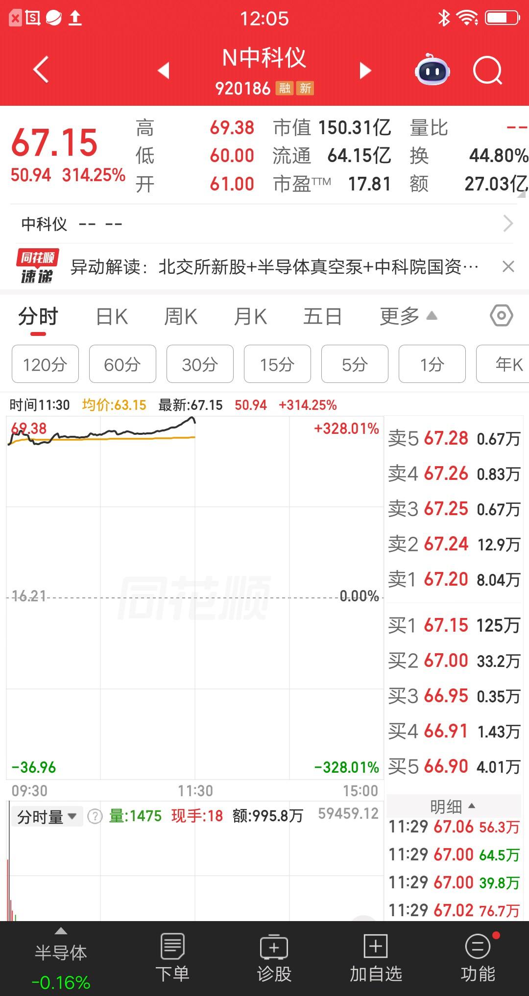 一位北京的股民,190万满仓北交所新股中科仪,成交价格大约63元。作为多年的老股民,他深知上市即巅峰的规律,为啥还要梭哈追高呢? 他深入了解了公司的基本面,觉得逻辑很硬。首先公司属于半导体行业,这可是牛股辈出的板块呀,板块涨幅都超过2倍了,公司股价也就涨3倍,相比之下并不算高。 公司是国内干式真空泵空头,集成电路领域出货量最大,已批量供货中芯国际,长江存储、华虹集团等主流晶圆厂,并打破欧美日长期垄断。而且还有中科院背景,这逻辑太正了,一股想买的冲动油然而生。 他把自己的想法,分享到社区,引来很多网友关注。有人说能拿这么多钱炒股,现实中一定很有钱,真让人羡慕嫉妒恨呀。还有人说,价值投资最难的是执行力,持股周期都是按年算的。 咱们不懂基本面,没啥好的意见提供,只能祝愿他价投顺利吧。