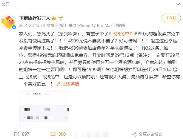飞猪这波格局直接夯到爆好吧! 飞猪免单做为一个微中奖绝缘体,好不容易薅个奶茶团购的免单,结果不是距离太远就是没等用就过期。飞猪竟然传递了这份幸运,能不能内幕我啊,这好运什么时候能轮到我。免单大奖过期未使用急坏飞猪