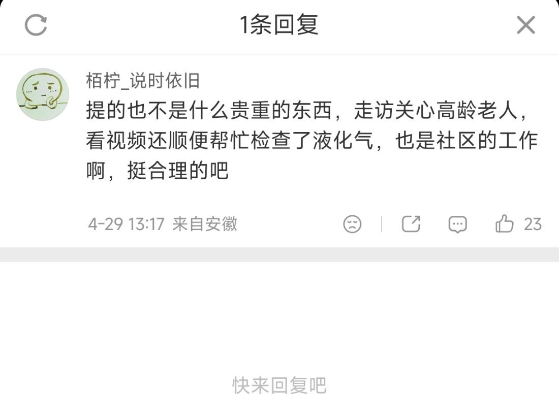 官方回应慰问的困难老人摆五粮液¹ 社区人员没问题。没必要吹毛求疵,人家就是去重点探访(身体欠佳的、家庭困难的)高龄群体。显然身体欠佳不一定就家庭困难。² 当地养老工作有亮点,以后会有一个新职业“长期照护师”;老年人可以买长护险,这样将来一旦需要长期招护,成本会低些。热点科普