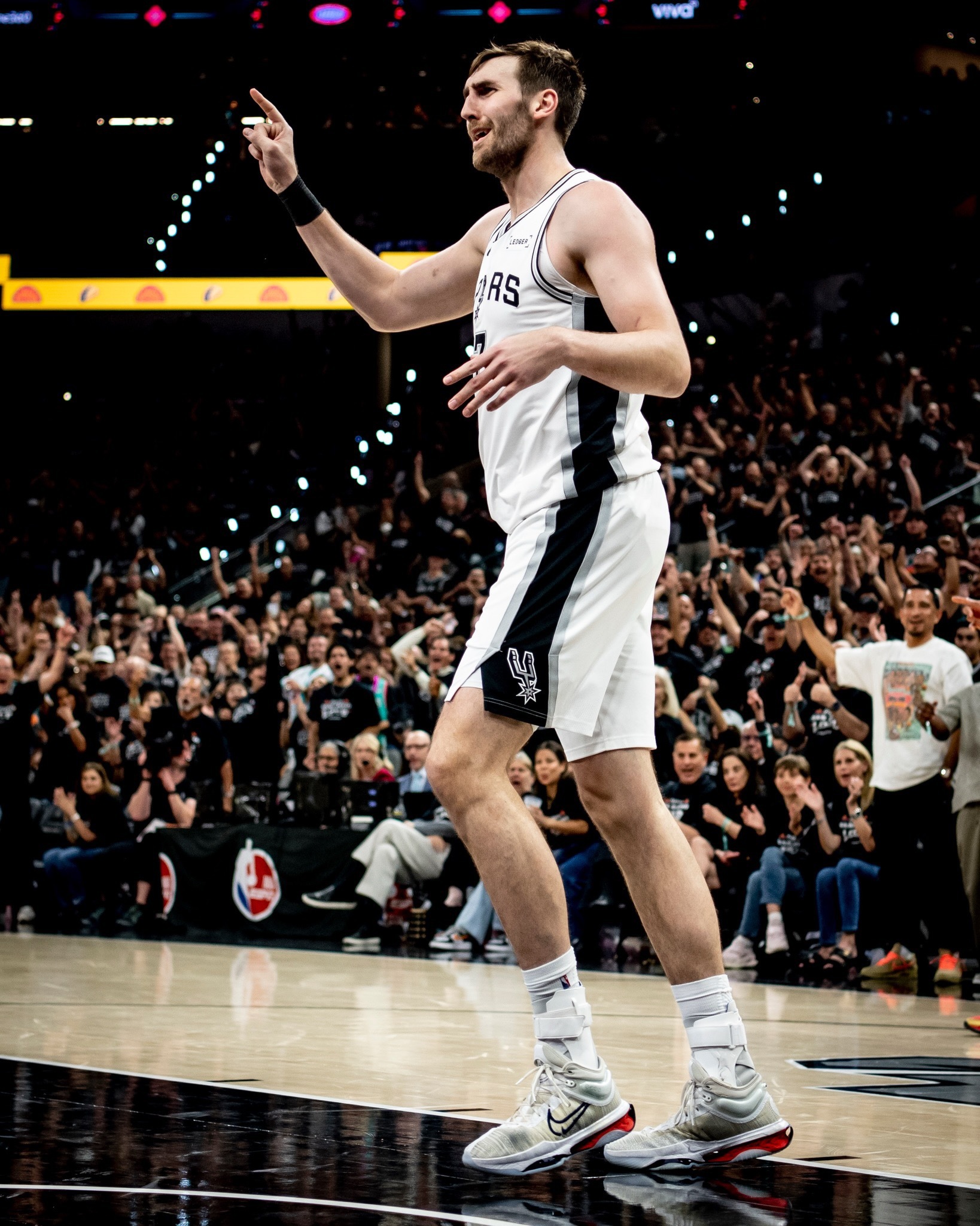 4月29日NBA季后赛首轮G5,马刺主场大胜开拓者,总比分4-1晋级西部半决赛。