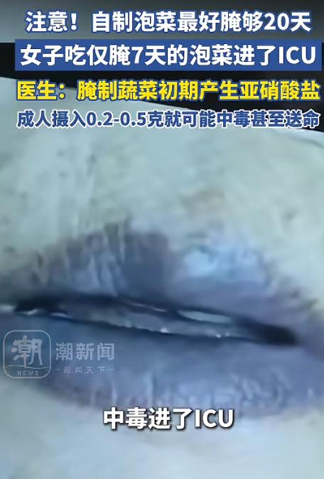 细思极恐呀! 4 月 26 日报道,福建一名女子自制泡菜,才腌了 7 天就嘴馋开吃,吃完没多久就头晕胸闷、嘴唇发紫,送医后直接进了 ICU 抢救。医生说这是亚硝酸盐急性中毒,这种刚腌好的 “几口泡菜” 根本没熟透,吃一口都可能要命,嘴馋真的别拿自己的命开玩笑! 这女子平时就爱捣鼓些家常小菜,前阵子看网上的泡菜教程,觉得步骤简单又开胃,就跟着视频买了新鲜的萝卜、白菜,洗干净切好撒上盐和辣椒,塞进了玻璃罐里。 那几天她几乎每天都要打开罐子闻闻味儿,看着菜慢慢变软、渗出汁水,心里的期待越来越高。 第七天晚上,她实在按捺不住,用干净的筷子夹了两大筷子脆生生的泡菜,就着热粥吃了下去,还跟家人念叨着“比外面买的还好吃”。 谁知道没过半小时,她就开始觉得胸口发闷,像是有块石头压着,喘不上气,紧接着嘴唇和指尖开始发麻发紫,连说话的力气都没了。 家人一看情况不对,慌慌张张地把她往医院送,路上她的意识越来越模糊,送到急诊时血氧饱和度已经降到了危险值,医生直接下了病危通知,把她推进了ICU抢救。 医生后来解释,泡菜腌制的过程,其实是一场细菌和亚硝酸盐的“拉锯战”。 蔬菜本身含有硝酸盐,在腌制初期,杂菌会把硝酸盐转化成有毒的亚硝酸盐,据说在腌制后的第3到8天,亚硝酸盐的含量会冲到顶峰,尤其是温度偏高、用盐量不足或者容器没彻底消毒的时候,这个峰值会来得更早,浓度也更高。 亚硝酸盐进入血液后,会把负责运输氧气的血红蛋白“改造”成无法带氧的高铁血红蛋白,人就会出现缺氧、嘴唇发紫的症状,要是摄入的量太多,很容易引发呼吸衰竭甚至死亡。 很多人都跟这个女子一样,觉得泡菜只要变酸了、脆了就是腌好了,其实亚硝酸盐要等腌制20天左右,才会被有益菌慢慢分解,降到安全的水平。 她自己后来也说,当时只想着快点吃到爽口的泡菜,根本没想起网上看过的安全提醒,现在躺在ICU里才后怕,那几筷子泡菜,差点让她再也见不到家人。 这件事传开后,不少网友都在评论区分享了自己的经历,有人说自己以前也吃过刚腌了一周的萝卜,吃完就上吐下泻,当时还以为是着凉了,现在才知道是亚硝酸盐的问题。 也有人说家里老人腌泡菜,从来都要等够一个月才开罐,以前还觉得老人太固执,现在才明白那是老一辈传下来的保命习惯。 还有网友吐槽,自己每次做泡菜,都要在罐子上贴个大大的“20天后开吃”的便签,就怕自己忍不住嘴馋。 其实自制美食本来是件温暖又治愈的事,但安全底线从来都不能打折扣,那些被我们当成“麻烦”的规矩,背后都是无数人踩过坑才换来的经验。 这篇文章只是个人看法,你有没有吃过刚腌好的泡菜?或者身边有过类似的经历吗?欢迎在评论区聊聊。