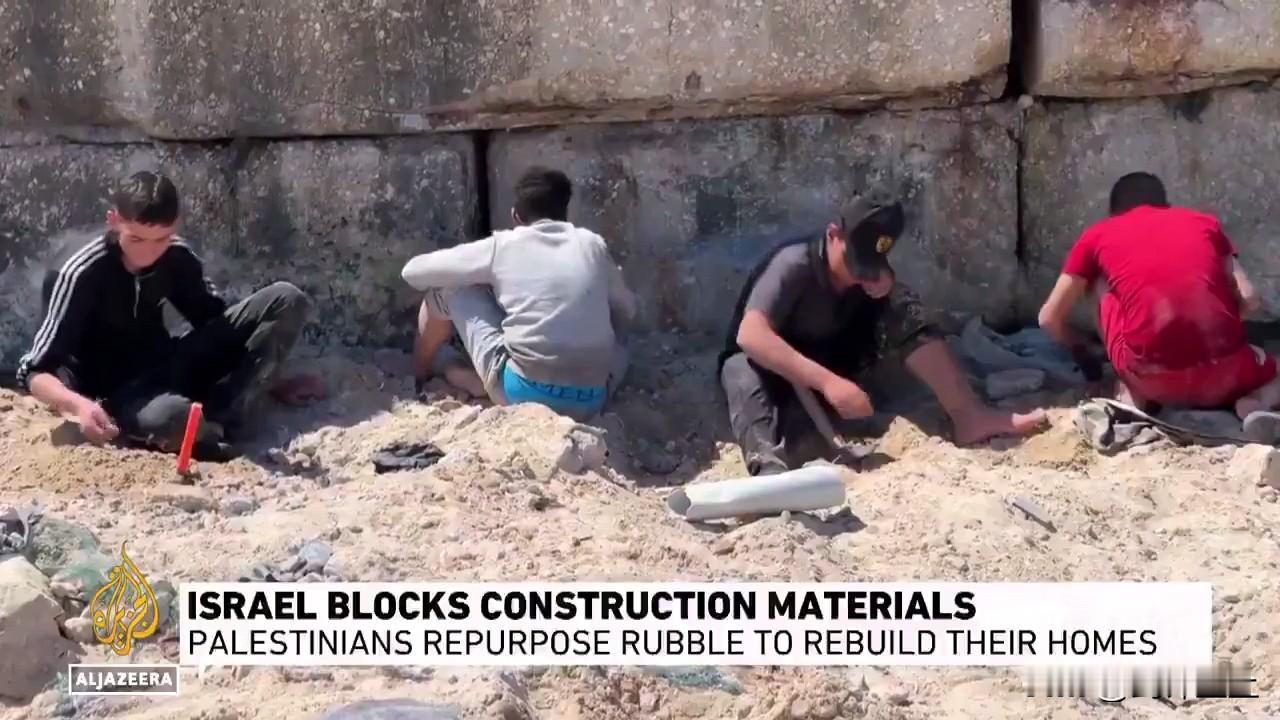 加沙真的太惨了! 在被以色列炸成废墟后,以色列继续阻止建筑材料进入加沙 巴勒斯坦人只能从废墟里找石头和沙子,用双手一点点淘出材料 如果这都不是人间地狱,什么是人间地狱?