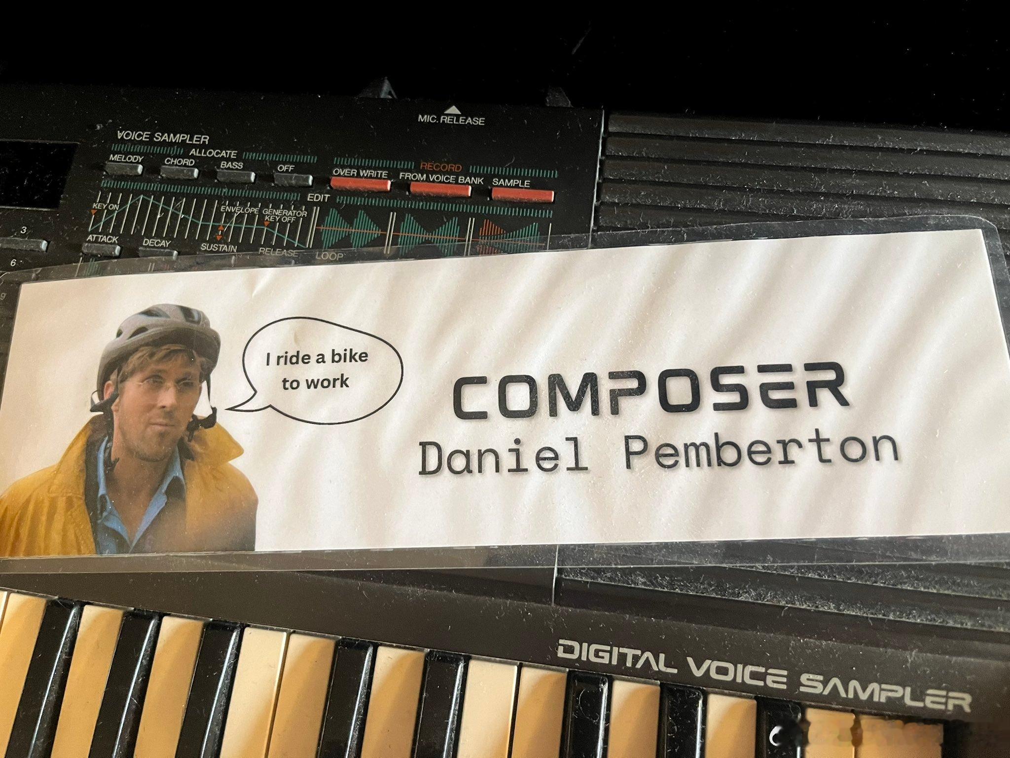 配乐家Daniel Pemberton在为《挽救计划》配乐期间的门牌标识(而且他也确实是骑车去工作)