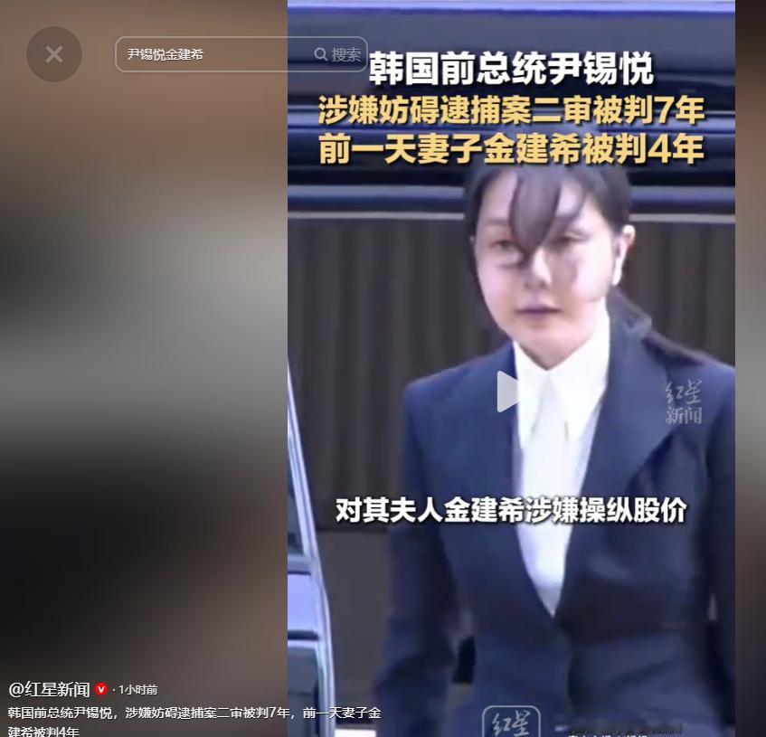 前总统尹锡悦、前第一夫人金建希,这对曾执掌韩国最高权力的夫妇,接连栽倒在司法宣判席上,双双被判重刑、身陷囹圄。当地时间4月28日,金建希率先迎来二审宣判,获刑4年;仅仅一天后,4月29日下午,尹锡悦紧随其后,二审被判7年有期徒刑。 从权力顶峰到阶下囚,不过短短一日之隔,这场堪称韩国宪政史上最戏剧性的判决,让“青瓦台魔咒”再添浓墨重彩的一笔。 4 月 28 日的二审宣判,彻底推翻了今年 1 月一审对金建希的轻判结果。 此前一审中,首尔中央地方法院仅认定金建希收受统一教高价礼品一项罪名部分成立,判处其 1 年 8 个月有期徒刑,对于检方指控的操纵德意志汽车公司股价、违反政治资金法两项核心罪名,均作出无罪认定。 这一结果当时就引发韩国检方的强烈不满,当场提出抗诉,认为一审判决存在事实认定错误,量刑明显过轻。 二审庭审中,首尔高等法院全面推翻了一审的无罪认定,不仅维持了受贿相关罪名的有罪判决,更明确认定金建希在股价操纵案中属于 “积极共犯”,而非一审所认定的 “单纯出资人”,同时确认其违反《政治资金法》的罪名成立。 最终法院作出判决,判处金建希有期徒刑 4 年,并处 5000 万韩元罚金,没收其收受的价值 6220 万韩元的钻石项链,另追缴违法所得 2094 万韩元。 就连一审中被认定为 “祝贺礼物” 的香奈儿手袋,二审法院也给出了截然不同的认定,明确指出总统就职前一个月交付的高价物品,难以视为单纯的馈赠,本质上属于请托报酬,彻底坐实了其腐败犯罪的相关事实。 这场庭审全程通过电视直播,判决结果也引发韩国社会的广泛关注,成为韩国宪政史上首位被实刑判决的前第一夫人。 妻子的重判余波未平,仅仅一天之后,尹锡悦也迎来了自己案件的二审结果。 这起案件的核心,源于 2025 年 1 月,尹锡悦在任期间,动用总统警卫部门的力量,以人墙、车辆封锁等方式,强硬阻止韩国高级公职人员犯罪调查处对其执行逮捕令,涉嫌妨害特殊公务执行。 除此之外,检方还指控其在 2024 年 12 月的紧急戒严事件中,存在多项滥用职权的行为。 检方指控的细节显示,尹锡悦曾在国务委员未全员到场的情况下,违规召开国务会议强行通过戒严决定,侵害了国务委员的法定审议权,事后还补制、销毁相关公文试图掩盖违法事实,甚至指使总统府人员向外国媒体散布虚假信息,试图为自己的行为正名。 今年 1 月 16 日,该案一审宣判,首尔中央地方法院认定尹锡悦四项罪名成立,判处其有期徒刑 5 年。 对于这一结果,尹锡悦方与检方同时提起了上诉。尹锡悦方主张相关罪名不成立,要求法院作出无罪判决,检方则认为一审量刑过轻,且对部分指控的无罪认定存在错误,在二审中要求法院判处尹锡悦 10 年有期徒刑。 4 月 29 日的二审宣判中,首尔高等法院给出了最终结论:一审中认定的妨害公务执行、滥用职权等主要罪名全部成立,驳回尹锡悦方的全部上诉理由,同时采纳检方的抗诉意见,将一审中部分无罪的指控改判为有罪,最终将刑期从 5 年加重至 7 年。 宣判之后,尹锡悦的代理律师明确表示不服判决,将继续上诉至韩国大法院。 这两起接连的判决,并非孤立事件,其根源都指向 2024 年 12 月那场震动韩国的紧急戒严事件。 2024 年 12 月 3 日晚,时任总统的尹锡悦突然以铲除 “从北势力” 为由发布紧急戒严令,派出军警封锁国会,试图逮捕反对党政治人物,而当时韩国并无战争、事变等法定的紧急状态,这场仅持续 4 小时就被国会强制解除的戒严,直接引爆了韩国宪政危机。 此后,尹锡悦接连经历停职、逮捕、弹劾,最终被罢免总统职务,也由此陷入了多起刑事诉讼。 截至目前,尹锡悦身负 8 起刑事诉讼,此次宣判的妨碍逮捕案,只是其中之一。 早在今年 2 月 19 日,尹锡悦就因内乱头目罪被首尔中央地方法院一审判处无期徒刑,目前该案的二审仍在审理之中。 而他与妻子金建希双双被羁押、接连迎来重判,也创下了韩国宪政史上,首次出现前总统夫妇同时被司法判处实刑的纪录。 从入主总统府到沦为阶下囚,尹锡悦的政治生涯起落,不过短短数年。 这位曾以 “反腐斗士” 自居,亲手将两位前总统送进监狱的检察官出身的总统,最终自己也走上了同样的道路,再次印证了韩国政坛所谓的 “青瓦台魔咒”。 而这两起接连的二审判决,不仅是对尹锡悦夫妇个人违法行为的司法认定,更折射出韩国权力与法治之间的长期博弈。 对于韩国社会而言,司法判决能否真正厘清权力滥用的边界,能否遏制权力顶峰的腐败行为,才是这场政坛震荡背后,最值得关注的核心。