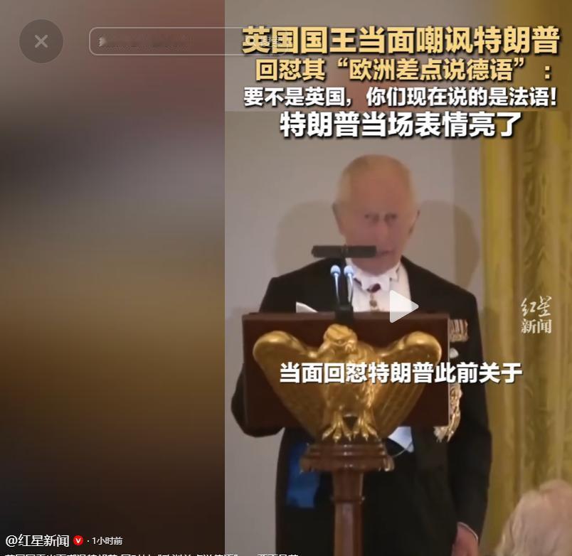 当地时间 4 月 28 日晚,美国白宫国宴厅内,英国国王查尔斯三世:“总统先生,您近日曾坦言,倘若没有美国,欧洲各国如今都得讲德语。恕我斗胆接一句:倘若没有我们英国,诸位现在都得说法语了。” 话音落下,现场先是短暂的安静,随即爆发出哄堂大笑,而坐在主位的特朗普,脸上露出了耐人寻味的复杂表情,这一幕被现场镜头完整记录下来,迅速传遍了全球。 这是查尔斯三世 2022 年继承英国王位以来,首次对美国开展国事访问,这场为期四天的行程,从一开始就被赋予了特殊的意义。 根据白金汉宫此前发布的声明,此次访问本是为了纪念美国独立 250 周年,彰显英美两国的历史渊源与双边关系,但所有人都清楚,这次访问的真正背景,是美英两国正因伊朗战事陷入前所未有的关系紧张之中。 自 2026 年 2 月底美国联合以色列对伊朗发起军事行动以来,特朗普就多次公开指责英国,称其没有积极支持美方行动。 他不仅调侃英国首相斯塔默 “不是温斯顿・丘吉尔”,还将英国的航空母舰贬为 “玩具”,甚至一度抱怨北约盟友在美国的军事行动中 “没有提供任何帮助”,斥北约是 “纸老虎”,直言 “美国不需要北约”。 在这样的舆论氛围下,英国王室的此次出访,被外界普遍视为英国打出的一张 “软实力王牌”,试图为裂痕渐深的英美 “特殊关系” 按下重置键。 而查尔斯三世的这句回怼,并非凭空而来的玩笑,恰恰精准命中了特朗普一贯的言论逻辑。 早在 2026 年 1 月的达沃斯世界经济论坛上,特朗普就曾在演讲中公开宣称,“如果没有我们,你们现在可能在说德语,甚至还夹杂着一点日语”,这番言论本就是他为自己的 “美国优先” 外交政策辩护,指责欧洲盟友 “忘恩负义” 的核心论据。 在此之前,特朗普也曾多次拿二战历史说事,声称是美国的参战拯救了欧洲,甚至曾在社交媒体上直言,“当我们美国赶到的时候,法国人已经在巴黎开始学德语了”。 面对这套 “美国拯救世界” 的叙事,查尔斯三世用一句同样基于历史的回应,完成了一次四两拨千斤的反击。 他口中的历史,是 1756 年至 1763 年的七年战争,在这场波及全球的争霸战中,英国与法国在北美大陆展开了激烈的控制权争夺,最终英国取得全面胜利,确立了在北美十三州的殖民统治,也让英语成为了这片土地的主流语言。 倘若当时法国获胜,如今的北美大陆,大概率会以法语为通用语言,这正是查尔斯三世言论的历史依据。 事实上,在这句引发全场轰动的回怼之前,查尔斯三世已经在讲话中展现了英式幽默的分寸感。 他先是拿特朗普的白宫翻新工程开起了玩笑,坦言 “说来惭愧,我们英国人早在 1814 年,就曾尝试对白宫做过一次房产改造了”,暗指第二次英美战争期间英军纵火焚烧白宫的历史,用自嘲的方式缓和了现场气氛,也为后续的回怼做了铺垫。 这场国宴之前,查尔斯三世的行程早已释放出明确的信号。 当天上午,特朗普在白宫南草坪为他举行了盛大的欢迎仪式,两人一同检阅了美军仪仗队,随后在椭圆形办公室举行了闭门会谈,会后特朗普对媒体表示,“这是一次非常愉快的会晤”,并未提及两国之间的分歧。 当天下午,查尔斯三世在美国国会发表了时长约 30 分钟的演讲,这是自 1991 年已故英国女王伊丽莎白二世之后,英国君主首次在美国国会发表讲话。 在那场演讲中,查尔斯三世明确强调,英美两国在 250 年前 “分开” 之后,发展出了 “人类历史上最具影响力的同盟之一”,尽管两国 “不总是同意对方的观点”,但 “总能找到团结起来的办法”, 同时直言欧洲与美国的伙伴关系 “今天比以往任何时候都更重要”,并呼吁各方 “不要屈从于孤立主义的呼声”,明确表达了对北约的支持,这番表态与特朗普此前的言论形成了鲜明的对照。 而在国宴的讲话中,特朗普也展现了难得的温和态度,他当众称赞查尔斯三世当天在国会的演讲 “非常精彩”,甚至开玩笑说,“查尔斯国王获得多次民主党人的起立鼓掌,而这一点我根本无法做到”,笑着坦言 “民主党人喜欢查尔斯的程度,超过他们以往喜欢任何共和党人或民主党人”。 只是,这场看似气氛融洽的国宴,终究无法掩盖英美两国当下的分歧。 一句带着玩笑性质的回怼,之所以能引发全球舆论的广泛关注,本质上是因为它戳中了当下跨大西洋同盟的核心矛盾。 特朗普政府的 “美国优先” 政策,正在不断冲击着维系了数十年的英美特殊关系,而英国王室此次出访,试图用历史联结与外交软实力弥合裂痕的努力,也都浓缩在了这句看似玩笑的话语之中。 如今,查尔斯三世的这句回怼,已经在全球社交平台上刷屏。有网友评论说,“一句玩笑话,道尽了英美两国数百年的恩怨与同盟”,也有人调侃,“特朗普大概没想到,自己用二战历史说事,却被人用更早的历史上了一课”。