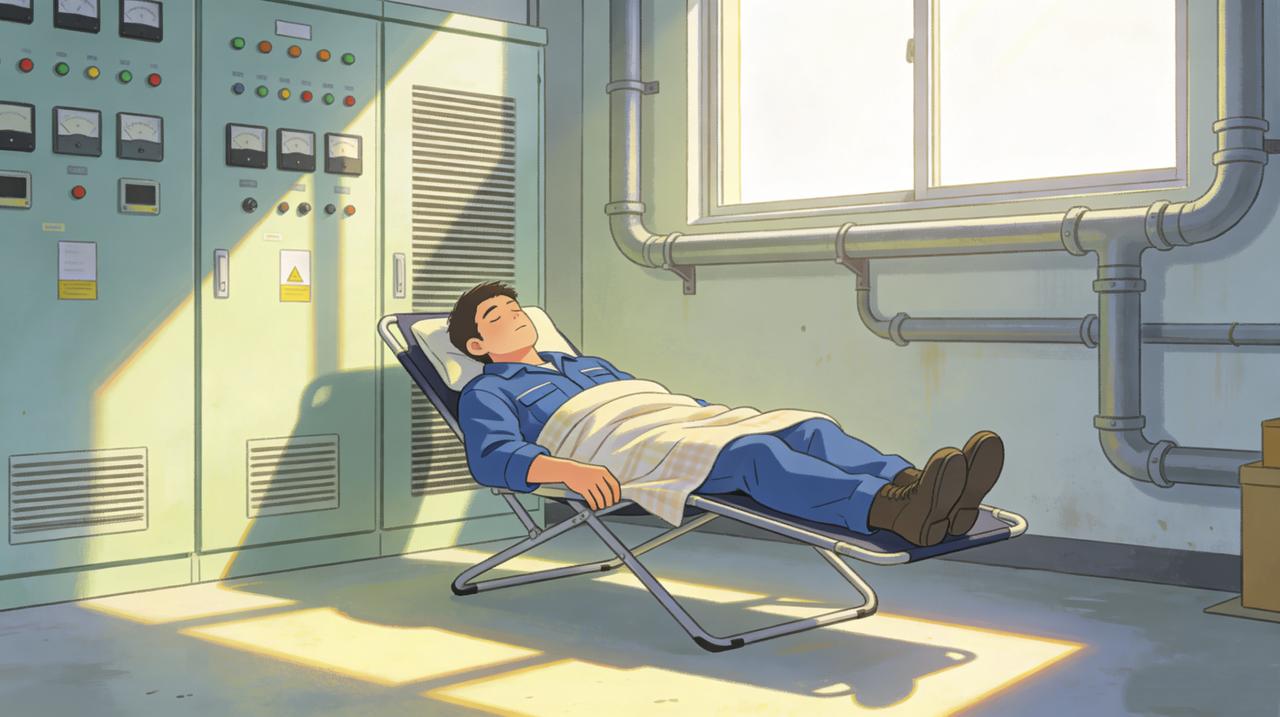 没毛病啊,这不挺好的,只要不在车间睡,没安全隐患,随便咋整。