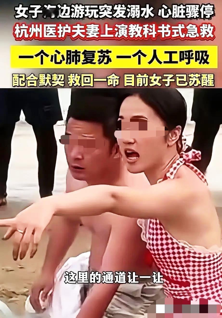 谁懂啊,这才是真正双向奔赴的夫妻,更是刻在骨子里的医者本能。 海南万宁沙滩日落时分,一名女子意外溺水被救上岸后,早已失去心跳呼吸,情况危急万分。围观人群手足无措时,一对90后医护夫妻立刻冲进人群跪地施救。 男生专业胸外按压,女生不顾脏乱徒手清理异物、做人工呼吸,配合默契到浑然天成。仅仅四分钟,就把濒临绝境的人从鬼门关拉了回来。 救人全程不慌不乱,事后还细致检查瞳孔脉搏,耐心给医护人员交代抢救时间节点,专业素养一眼就能看出来。 他们本是假期最后一天专程去追日落,却用一场生死营救,错过了晚霞,救下了一条鲜活生命。膝盖被沙石磨破也毫不在意,在他们眼里,救人从来不是选择,而是本能。 最好的夫妻情分,不仅是朝夕相伴,更是心怀善意、并肩行善。换作是你,遇到这种紧急情况能挺身而出吗?