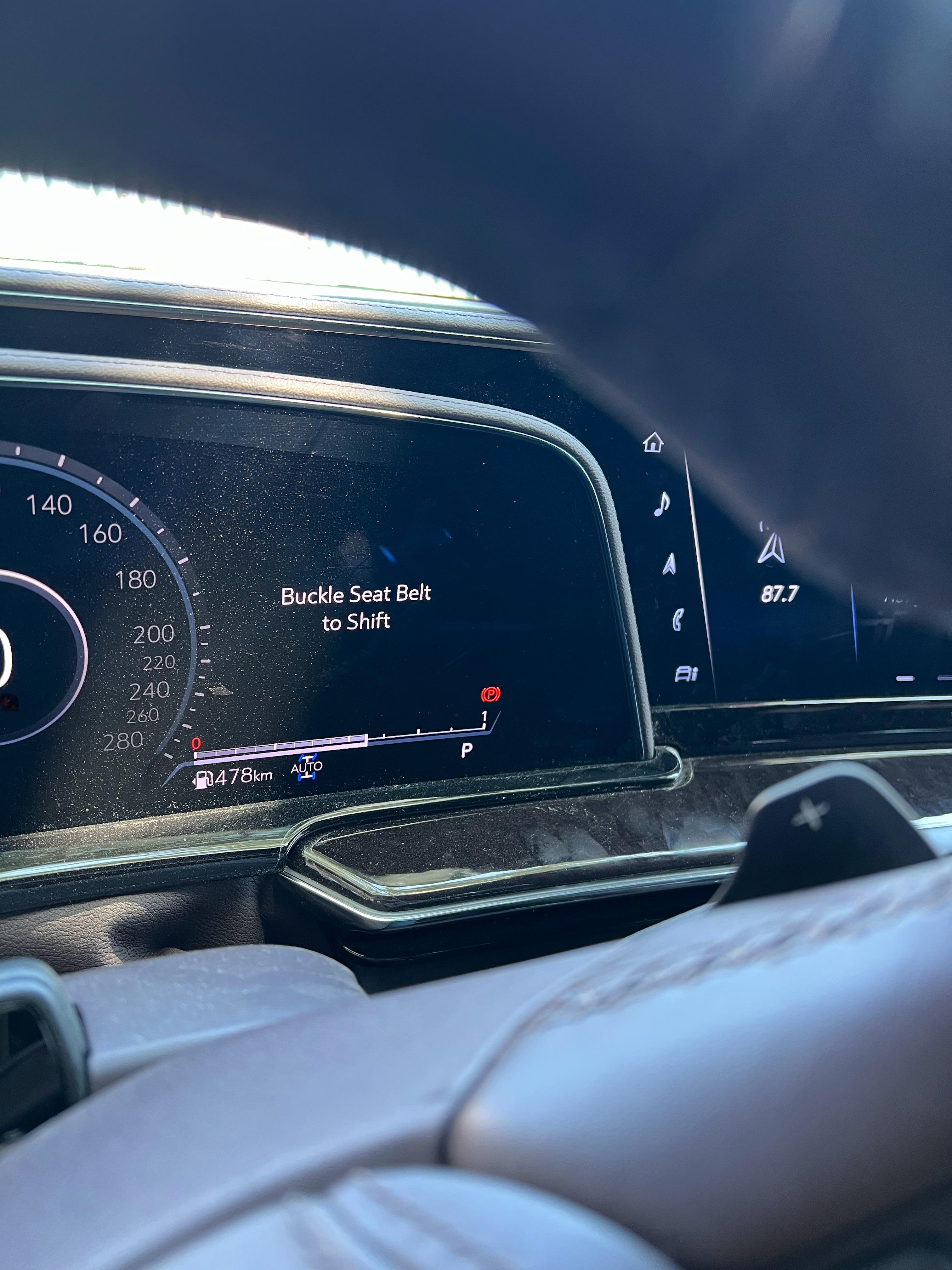 凯雷德有一个功能,就是插上安全带才能挂档。别的车是你不系安全带滴滴响凯雷德是直接不让你走