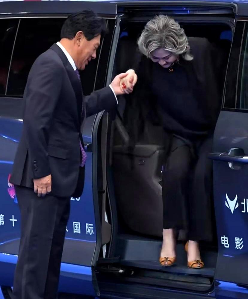 敢当着所有人面喊她“重来”的,也只有朱时茂了。 北京电影节红毯,丛珊比心手势不标准,被他当场戳穿:“你这是广播体操!” 两人对视一笑,毫不尴尬。 这俩人,一个72岁,一个64岁,没有剧本,没有营销,就这么大大方方地站在一起。 后台朱时茂夸丛珊更年轻了,丛珊回他幽默感越老越醇。这种老友间的默契,是演不出来的。 40多年过去,《牧马人》里的许灵均和李秀芝,就这样在现实里“活”了过来。 他们的对视里,刻着的是观众的青春,也是光影的传承。