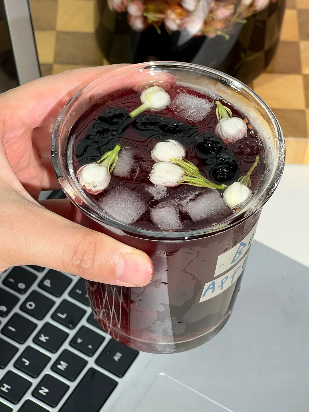 还做了桑葚茉莉果酒!果香和茉莉香在口中萦绕,好好喝啊!喝完嘴巴都是香香的~