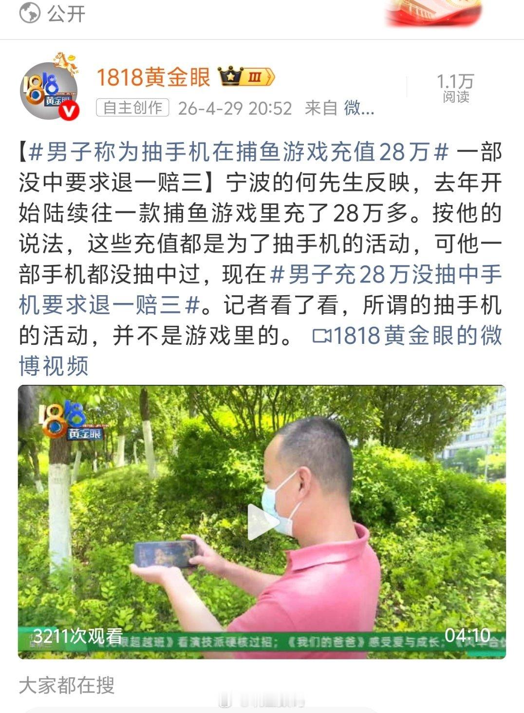 男子称为抽手机在捕鱼游戏充值28万人才哥啊,为了抽个手机去充值28万,这是咋做到的?