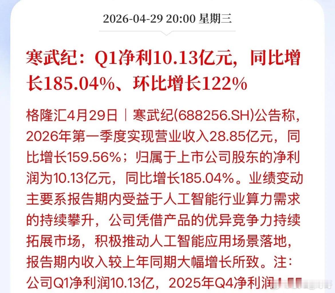 营收直接翻1.5倍,市场预期20-22亿元,净利润从2025年Q4的4.55亿直接暴增至10.13亿。