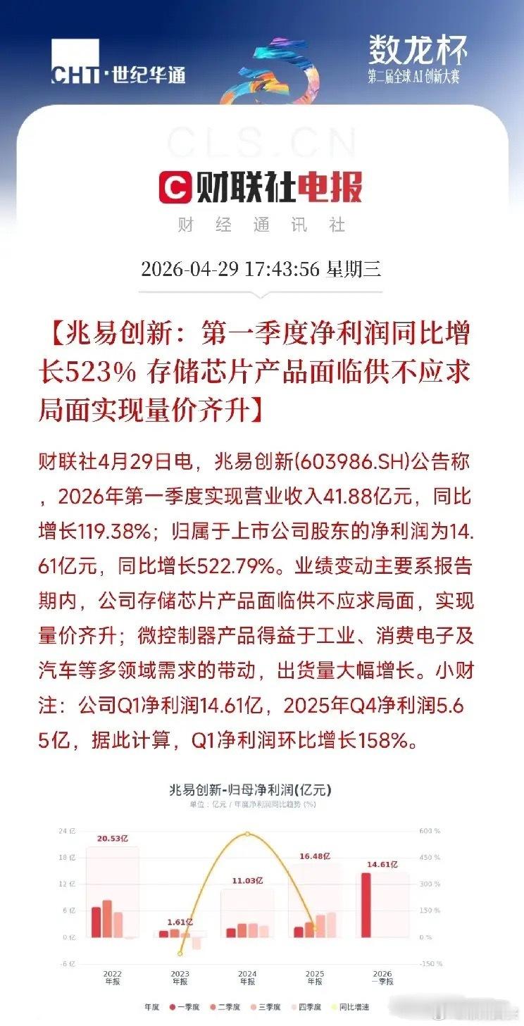 一季度净利大增523%!兆易创新这份成绩单,把存储芯片超级周期写到了极致