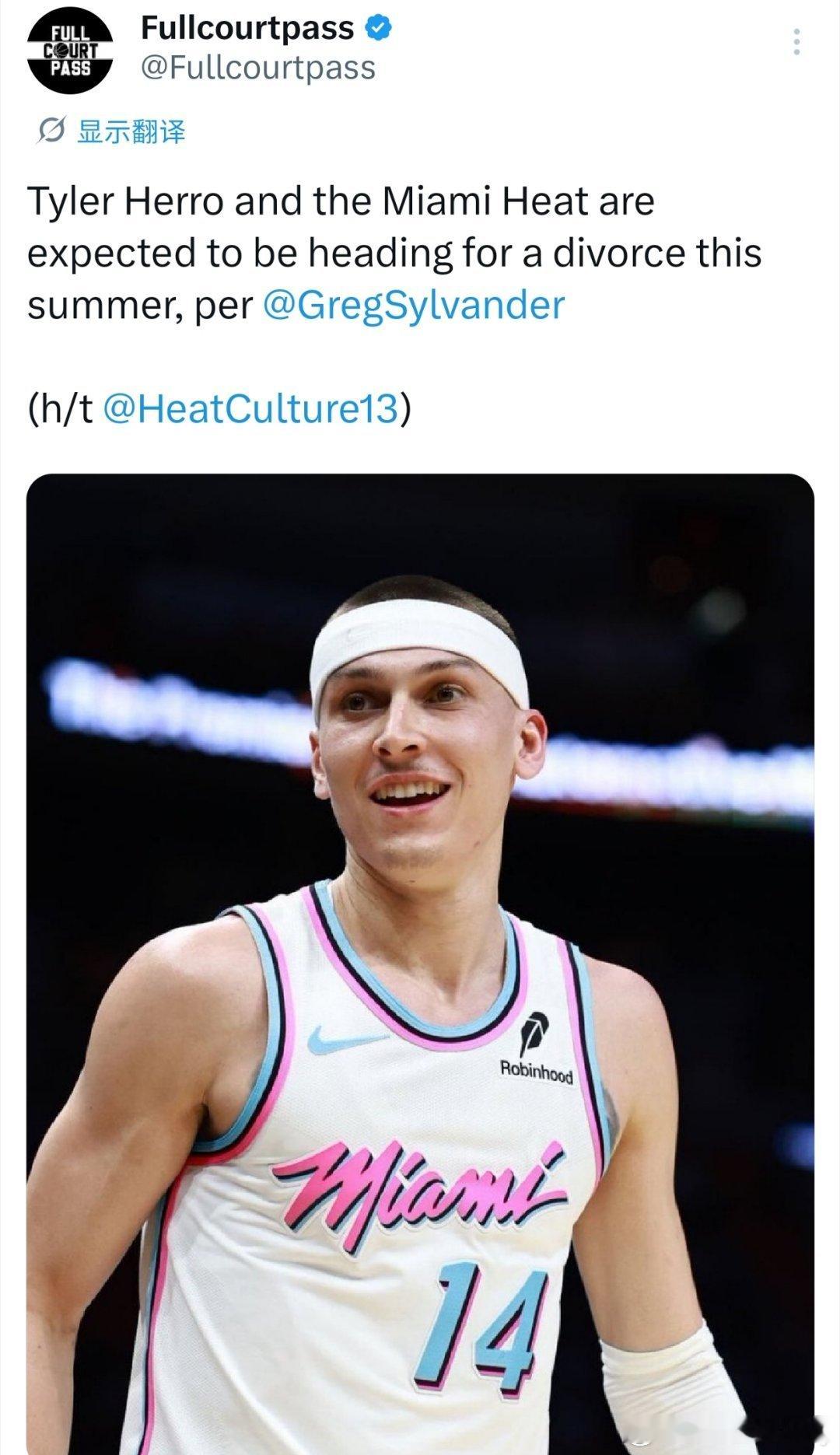 泰勒·希罗今夏预计将与迈阿密热火分道扬镳。