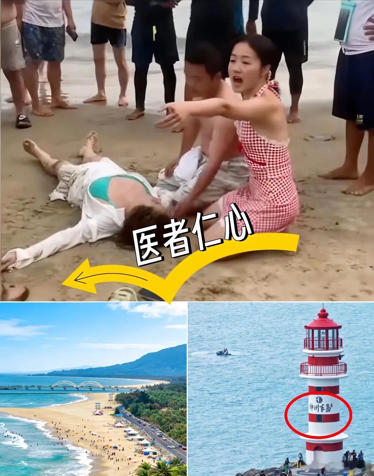 4月26日海南万宁神州半岛的沙滩上,一女子游泳溺水,眼看就要交代了。