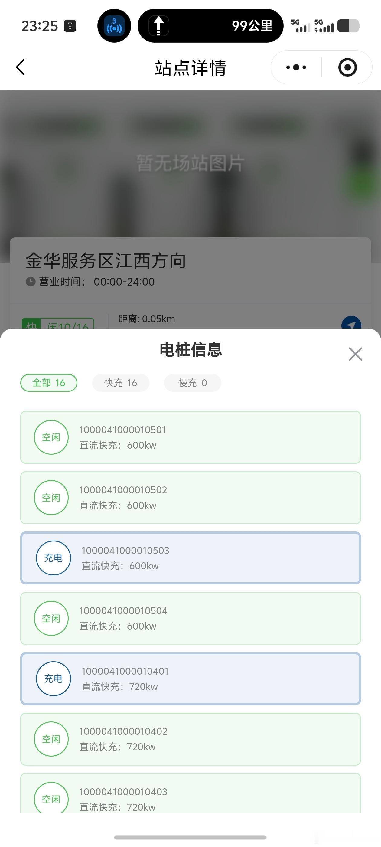 整个服务区应该是小 30 个桩,16 个华子的桩,App 上看功率不是 600 kW 的就是 720 kW 的。